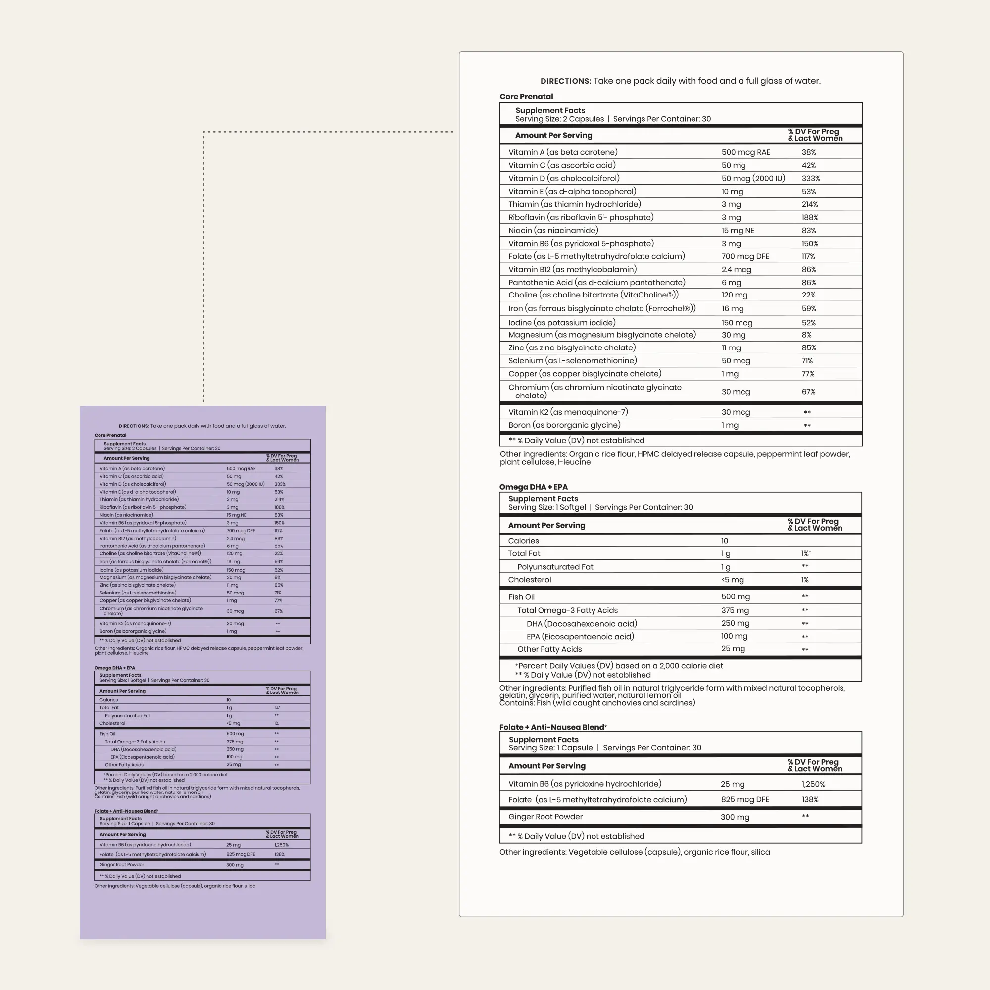 Im a New becoming dad and This isnt just your ordinary prenatal pack, its the MOST important prenatal pack to a start or continuation of your family. This pack helps with Brain & nervous system development, DNA & cell growth, Early heart & organ formation, Oxygen & blood development and Long-term cognitive support which is all the most important developing stages during the first trimester. And then go to do multiple ultrasounds and see and hear how healthy the development is coming along, Its a huge relief and weight off my wife and myself shoulders knowing that there is something out there that actually cares about the importance of the growth and healthy babies lives.