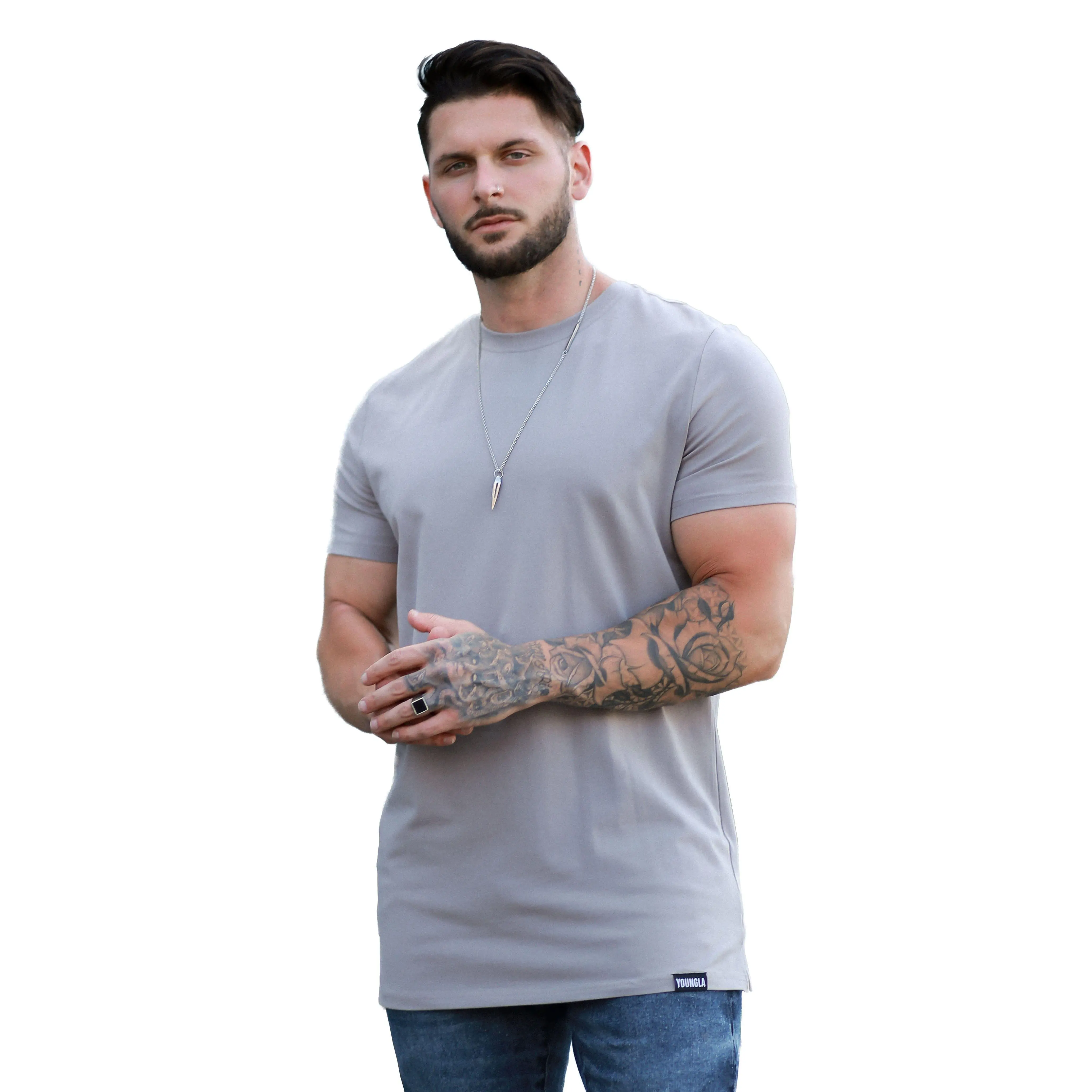 Great fit around the arms, and great material. Was expecting the heather grey to have a bit more of a blue tint to it but not much at all which I like. Overall great t shirt