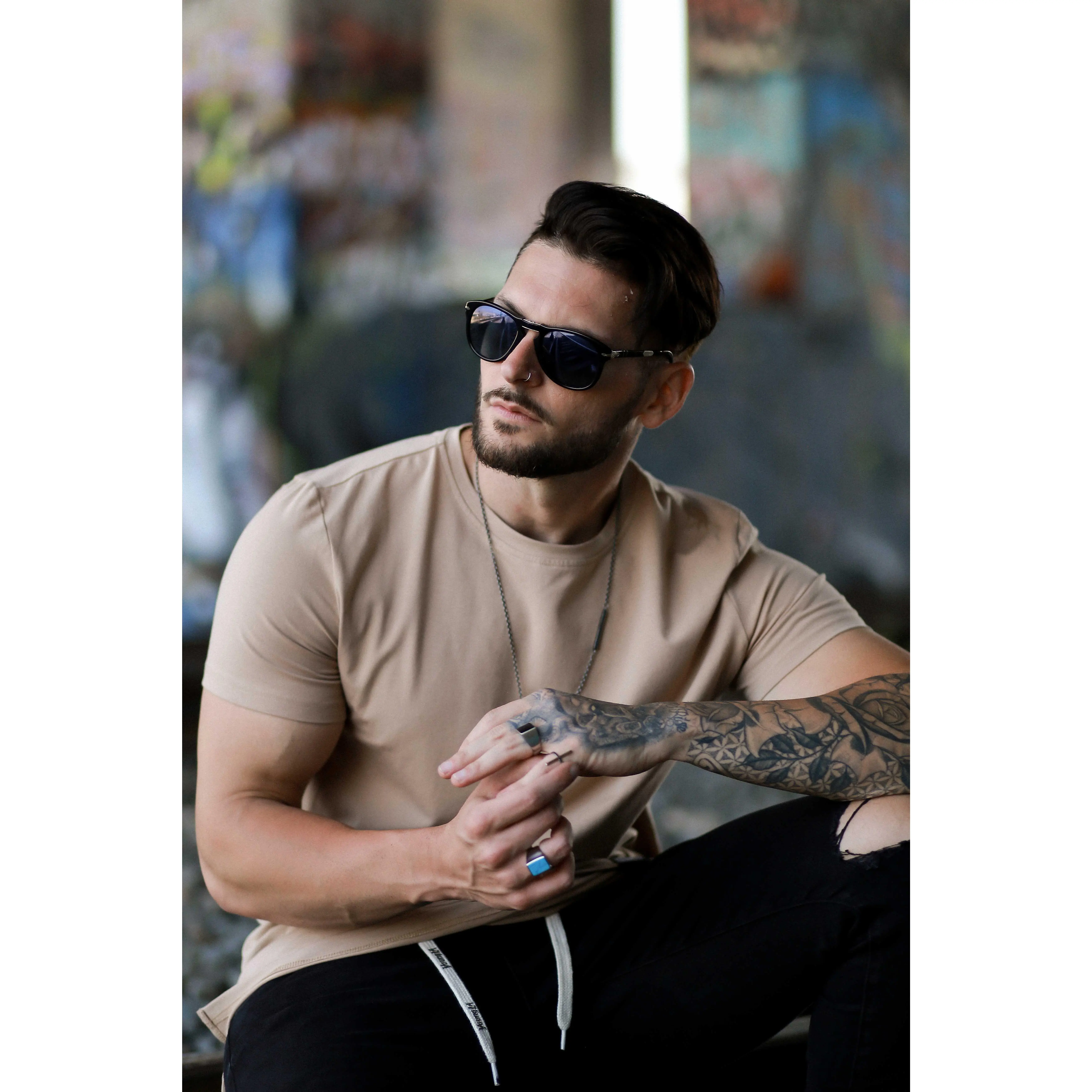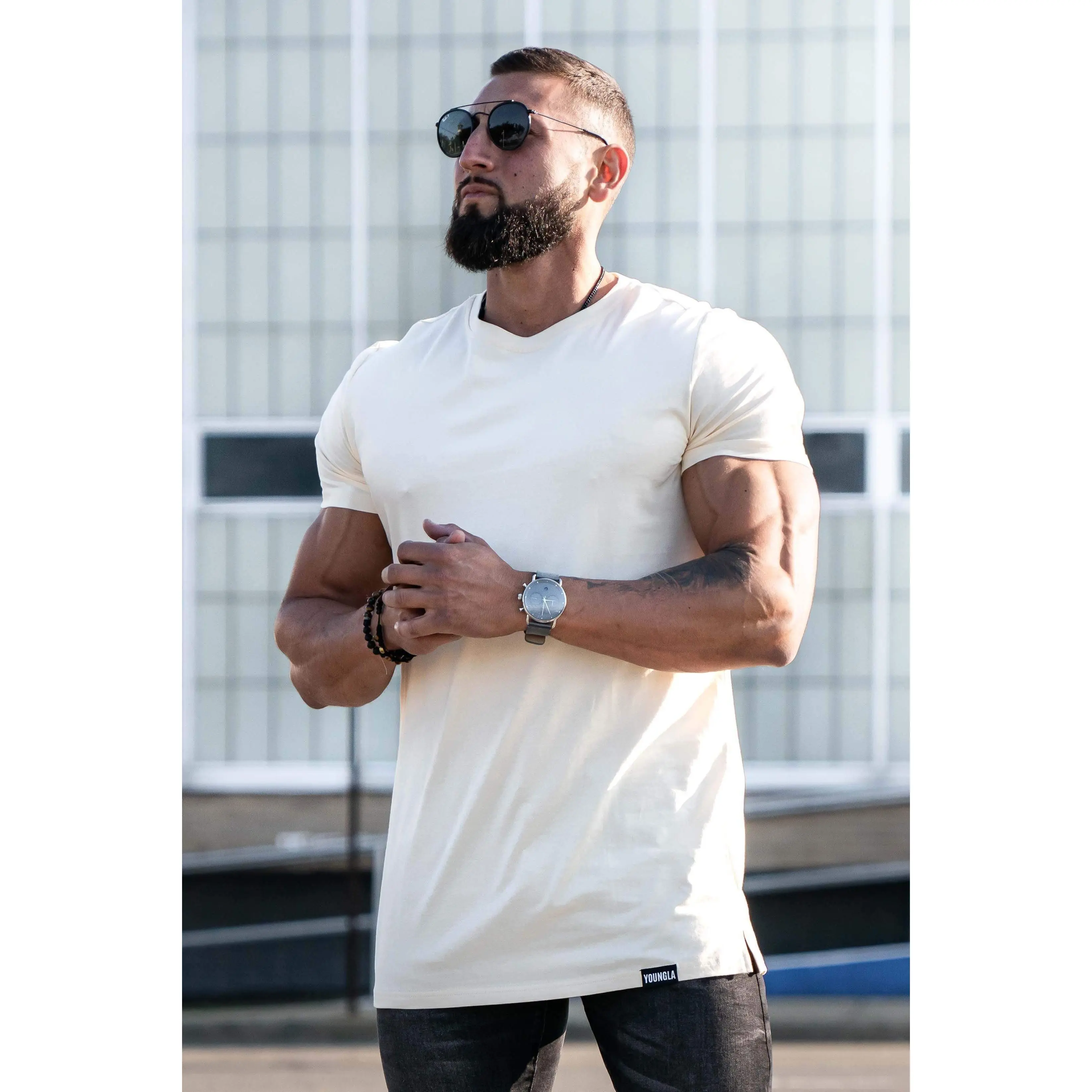 One of my favorite T shirts, design is a little bland but it hugs your arms extremely well and is very very high quality.