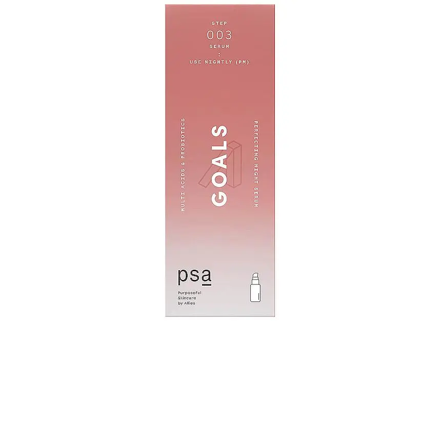 ·PSA Goals Multi Acids & Probiotics Perfecting Night Serum is a hydrating night serum that gets to work during your after-hours, reducing breakouts, dark spots, large pores, and blackheads as you sleep so you can wake up to clearer and more radiant skin