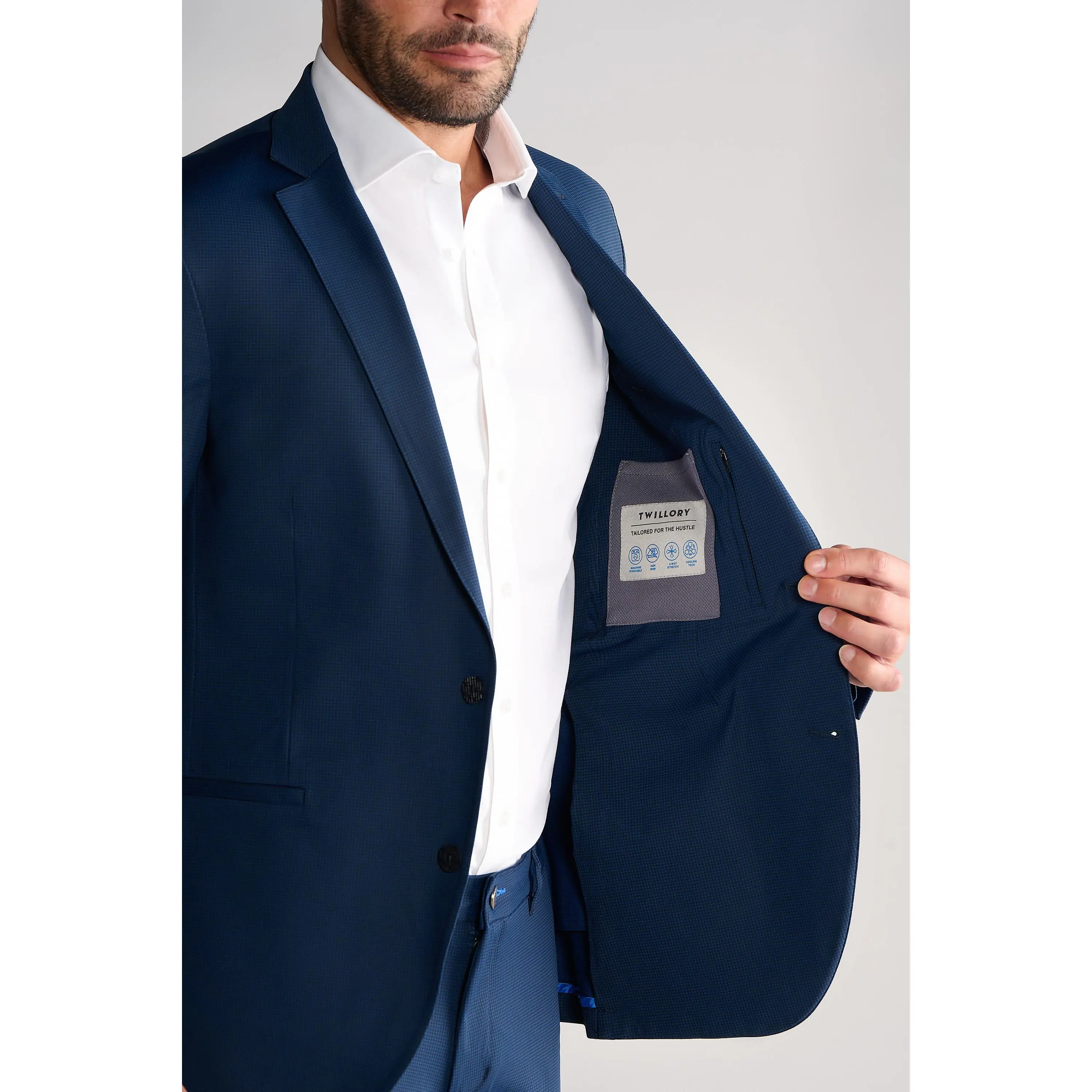 These performance blazers have extreme stretch, don't wrinkle, NEVER need dry cleaning (just throw them in the wash as if it's a tee), and are so versatile that you can wear them with your favorite pair of jeans. Our proprietary 3D shoulder pads provide you with a structured look, and the warp-knit fabric looks professional, yet provides unmatched comfort and fit.
