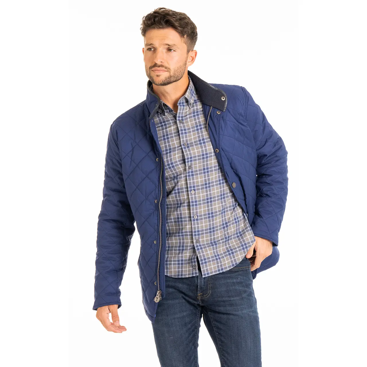 The timeless men's quilted jacket you know and love, now with performance features - tailored for your daily hustle. Thinsulate™ Fleece-lined for reliable warmth down to 32 degrees, zippered pockets and stretch fabric - perfect for the guy on the go. Where's the game changer, we hear you ask? Check under the hood! The magnetic hood that is; whip it out in the rain and fold it back into its pocket when things clear up. Cold weather just isn't a thing anymore with this performance jacket.