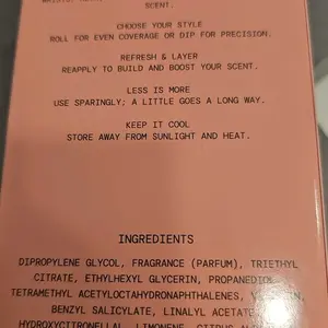 This smells so good. It’s literally my go to, the oil and perfume together is chef kiss. The oil is very strong and long lasting. And I love that there’s two ways you can apply it.