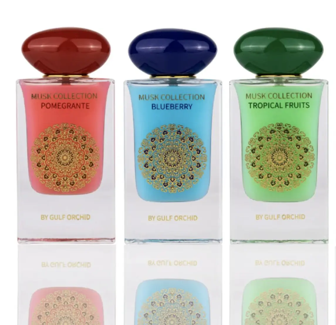 Set of 3 – Pomegranate Musk 60ml 2.0 Fl Oz, Tropical Fruits Musk 60ml 2.0 Fl Oz & Blueberry Musk 60ml 2.0 Fl Oz | Fruity & Fresh Unisex Perfume Set