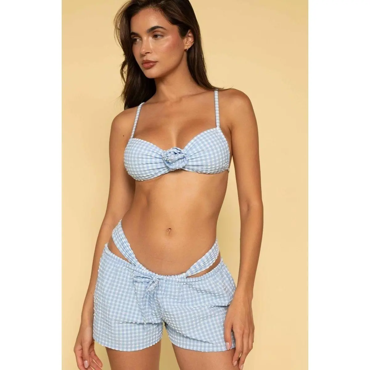 5. Peri Micro Gingham Low-Rise Drawstring Short
