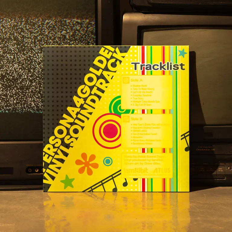 And what’s a Persona x iam8bit release without album art from our pal Drew Wise? This unique “Midnight Channel''-inspired die cut jacket lets you display the record in multiple ways, making it the perfect companion to our Persona 4 (4xLP). It’s time to make your record collection a little more golden.