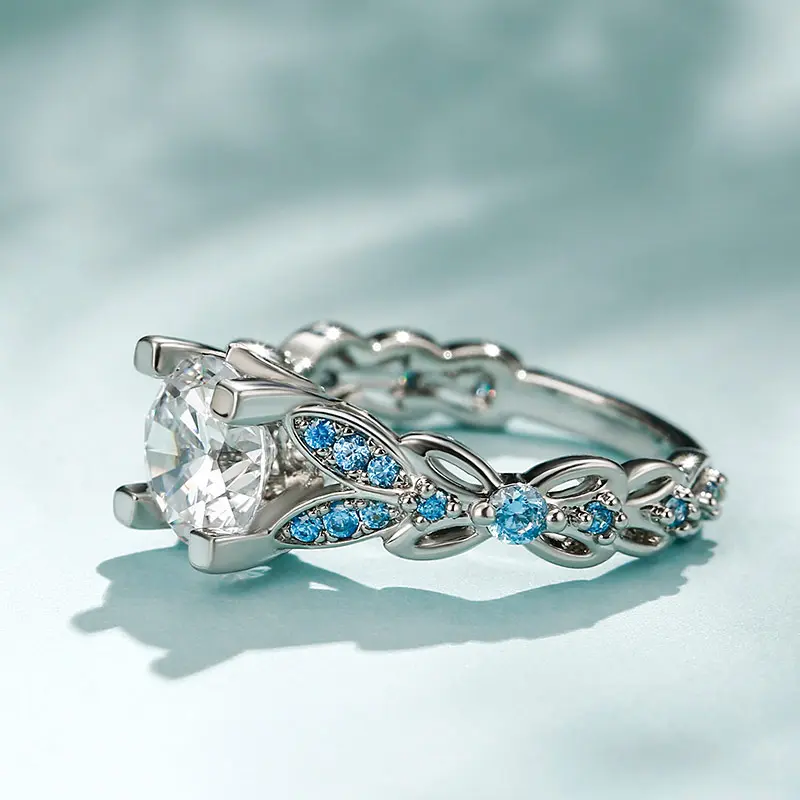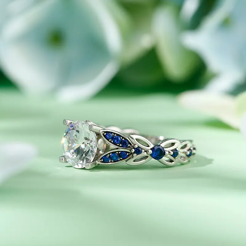 【Inspiration】: Glistening and glamorous, this ring will win your heart. This exquisite design features a shimmering round center stone sparkles in the centerpiece of the stunning engagement ring. The colourful side stones adorn the butterfly-inspired shank, making this ring vivid and dramatic. This ring is a splendid choice you are sure to adore