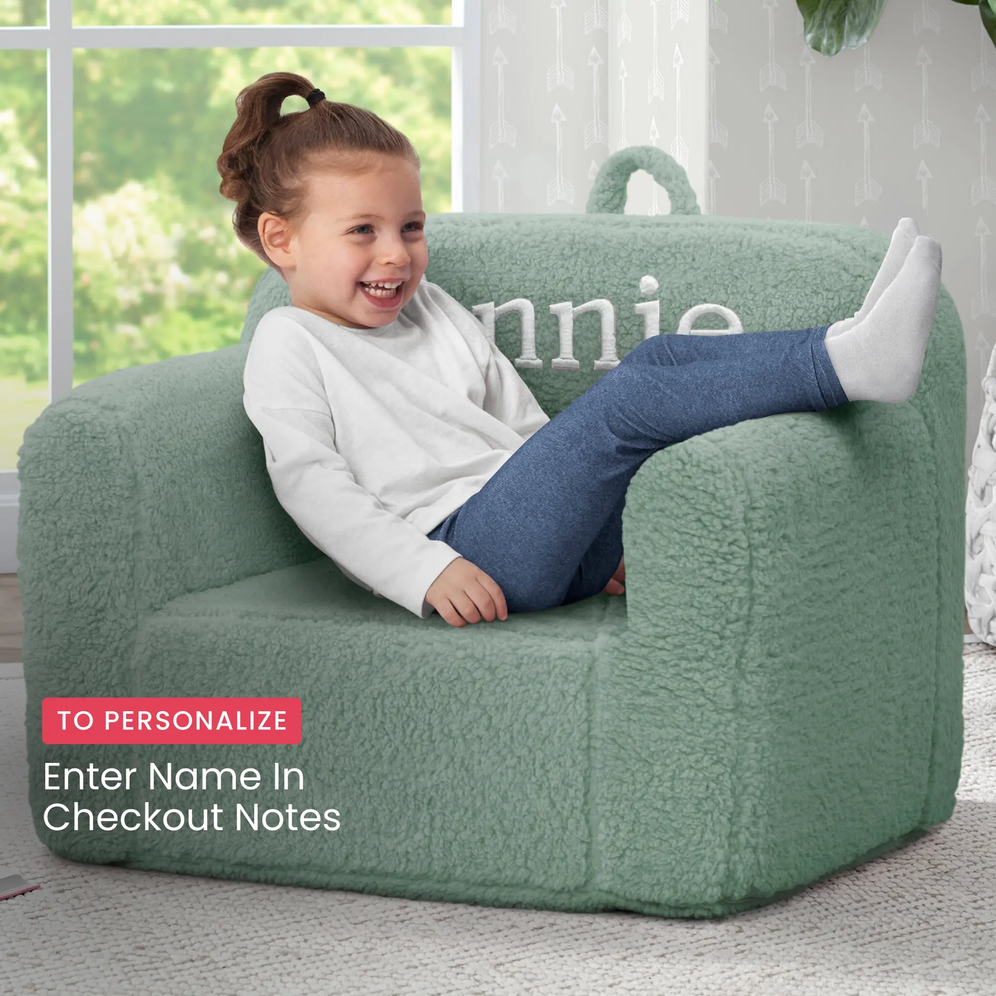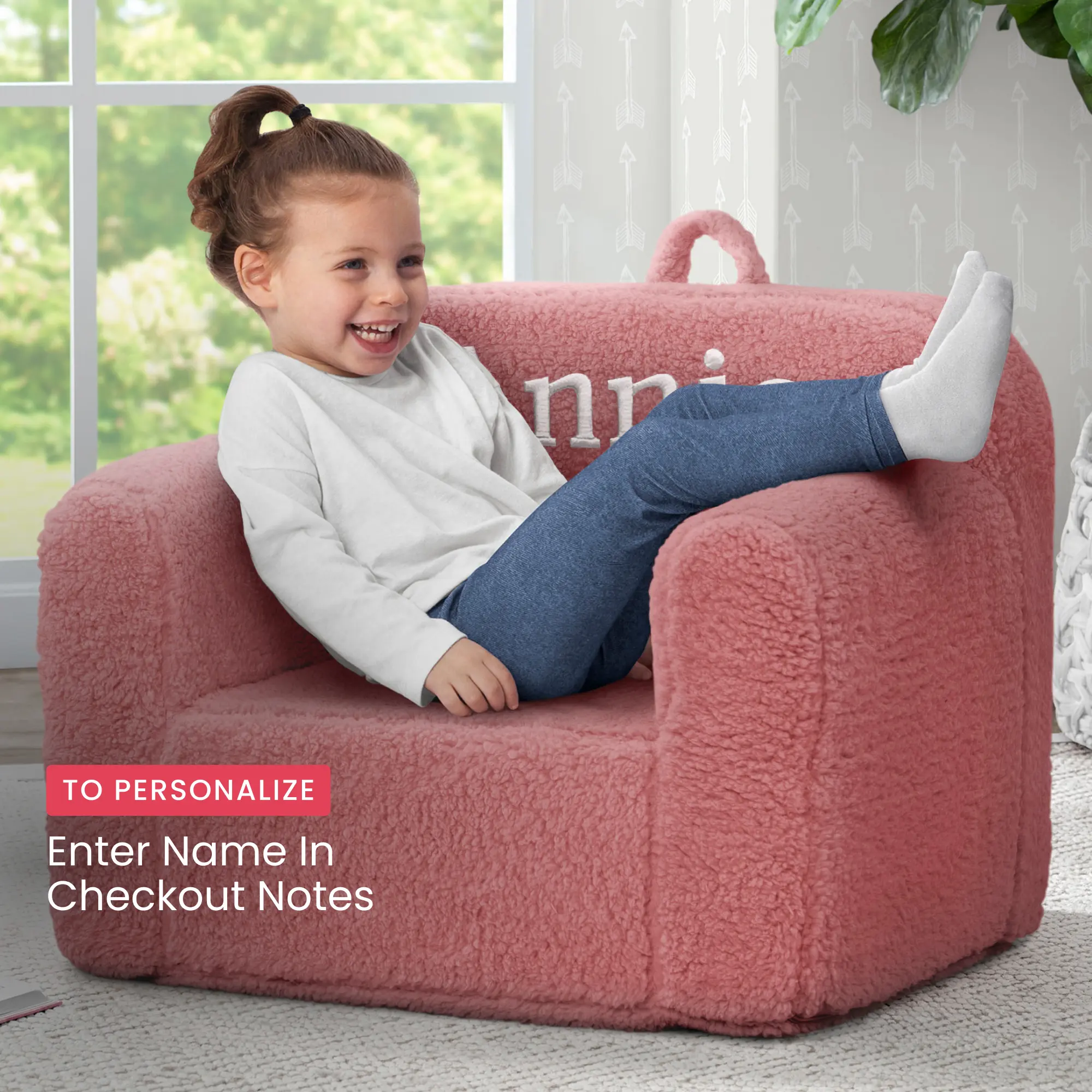 The cutest personalized Sherpa chair! @Delta Children #personalizedgifts #deltachildren #babytoys #toddlertoys #sherpa