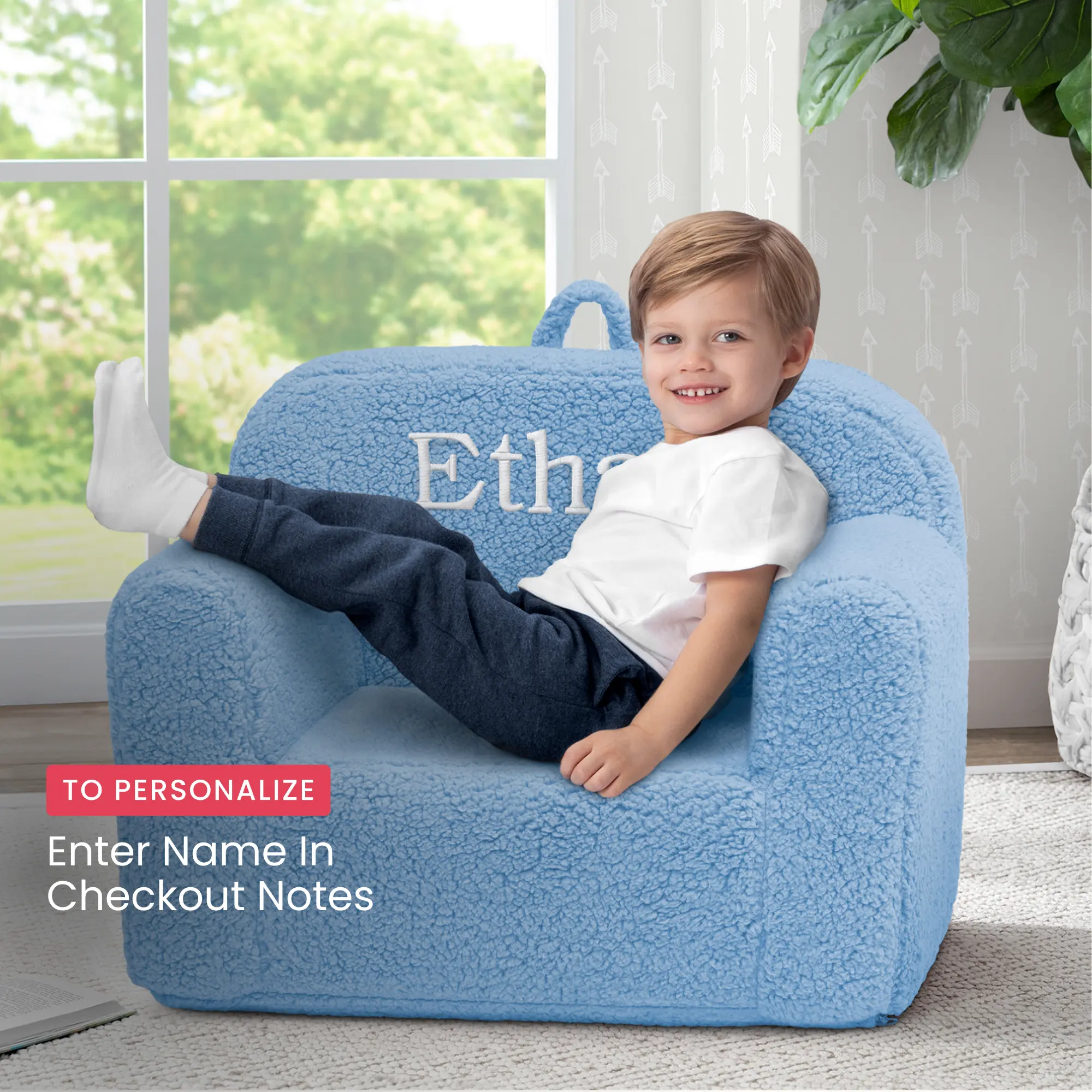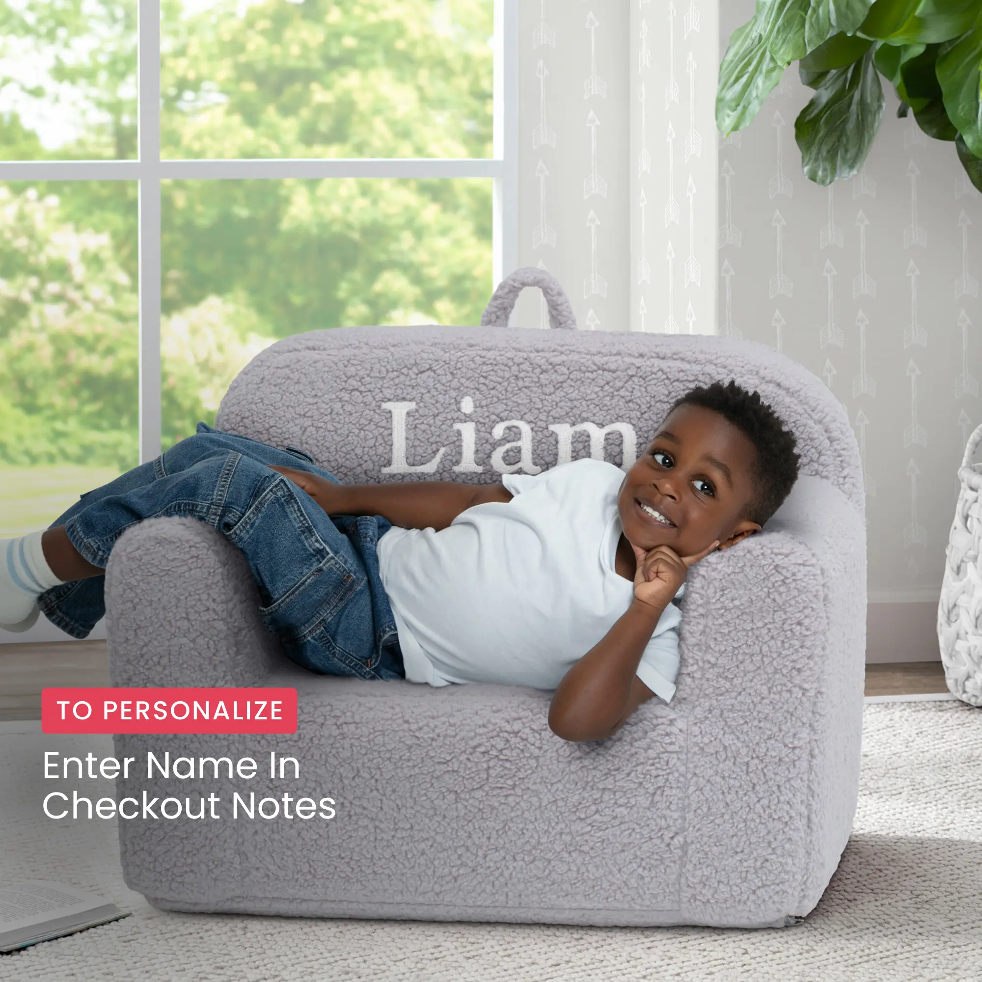 5. Personalized Cozee Sherpa Chair for Kids (Add Name In Checkout Notes)