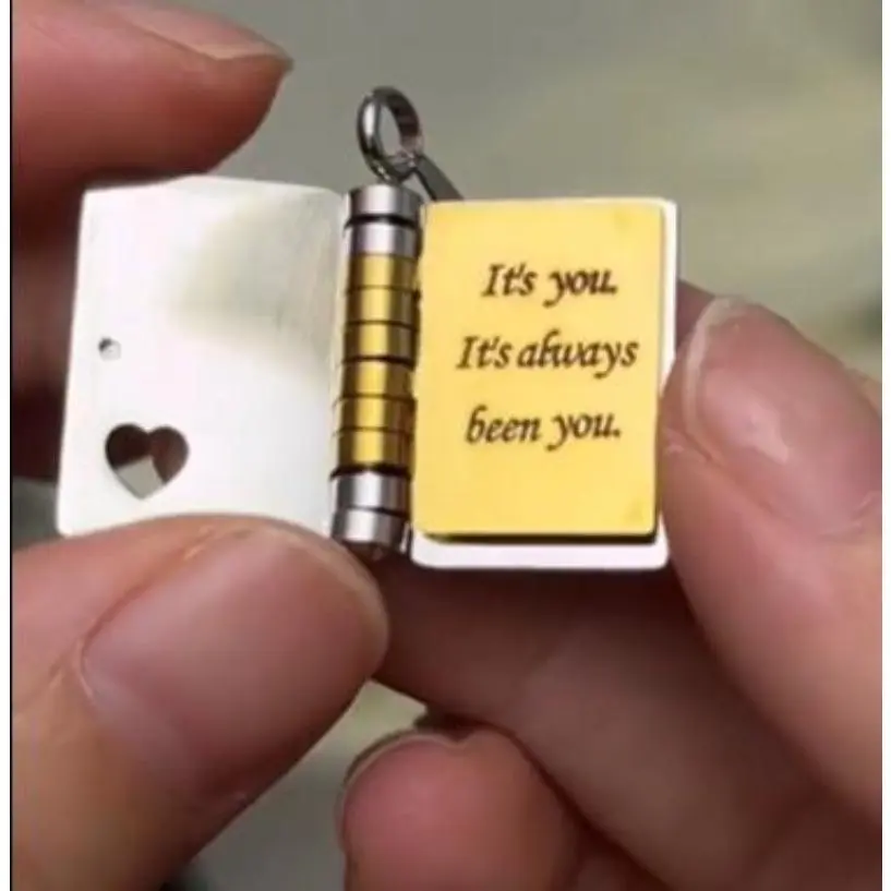 【To My Love Gifts】: My Shining Love Book Necklace — A Timeless Gift for Your Beloved. This special book necklace features a flip-open pendant engraved with loving messages. Every time they wear it, your lover will feel your love close to their heart, making it a beautiful symbol of the eternal bond between lovers.