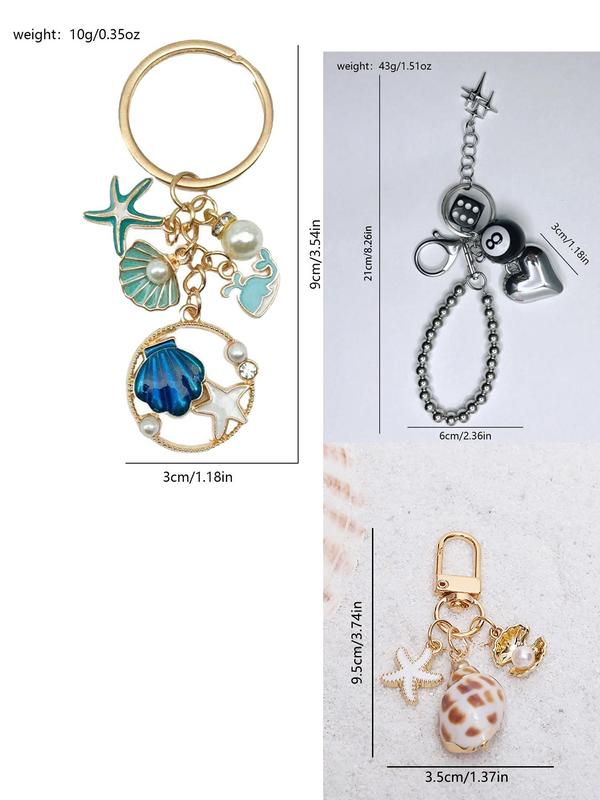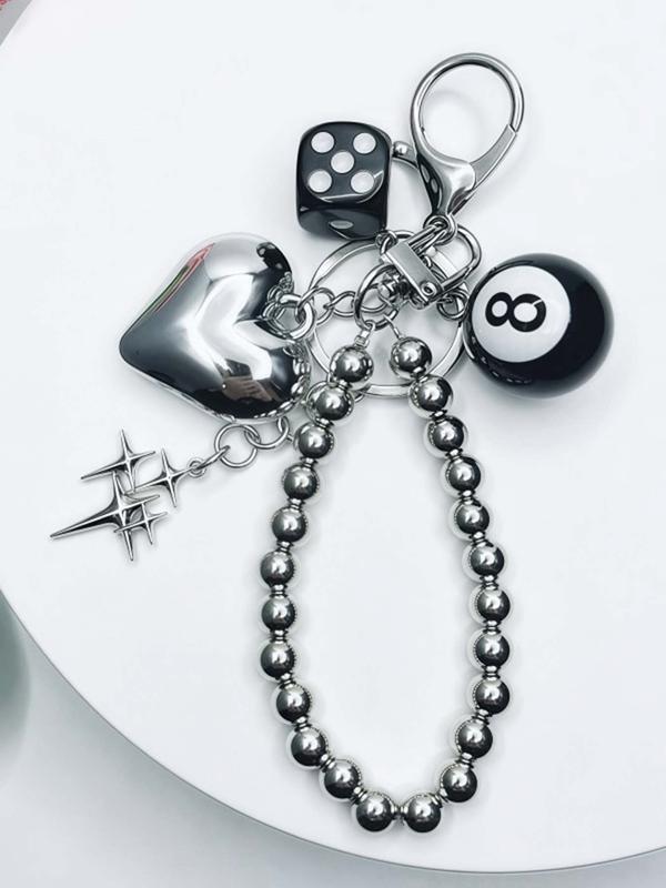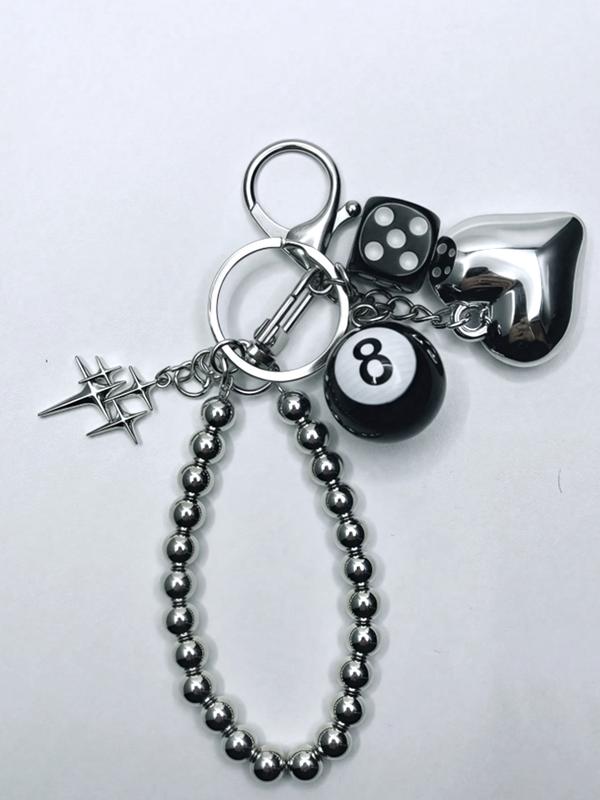 Personalized metal dark style street cool beaded keychain, DIY handmade keychain pendant four-pointed star dice bag pendant 8 ball element peach heart keychain pendant, small and exquisite versatile bag small object pendant Keychain For Bags