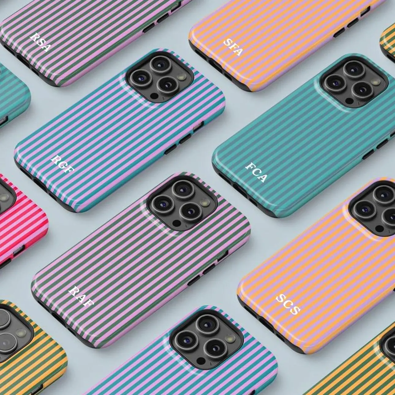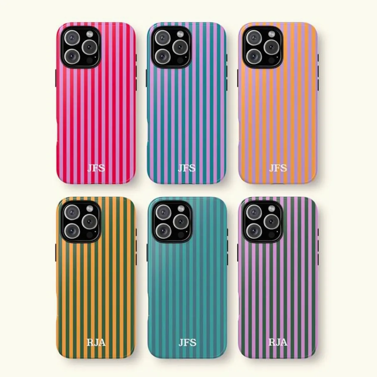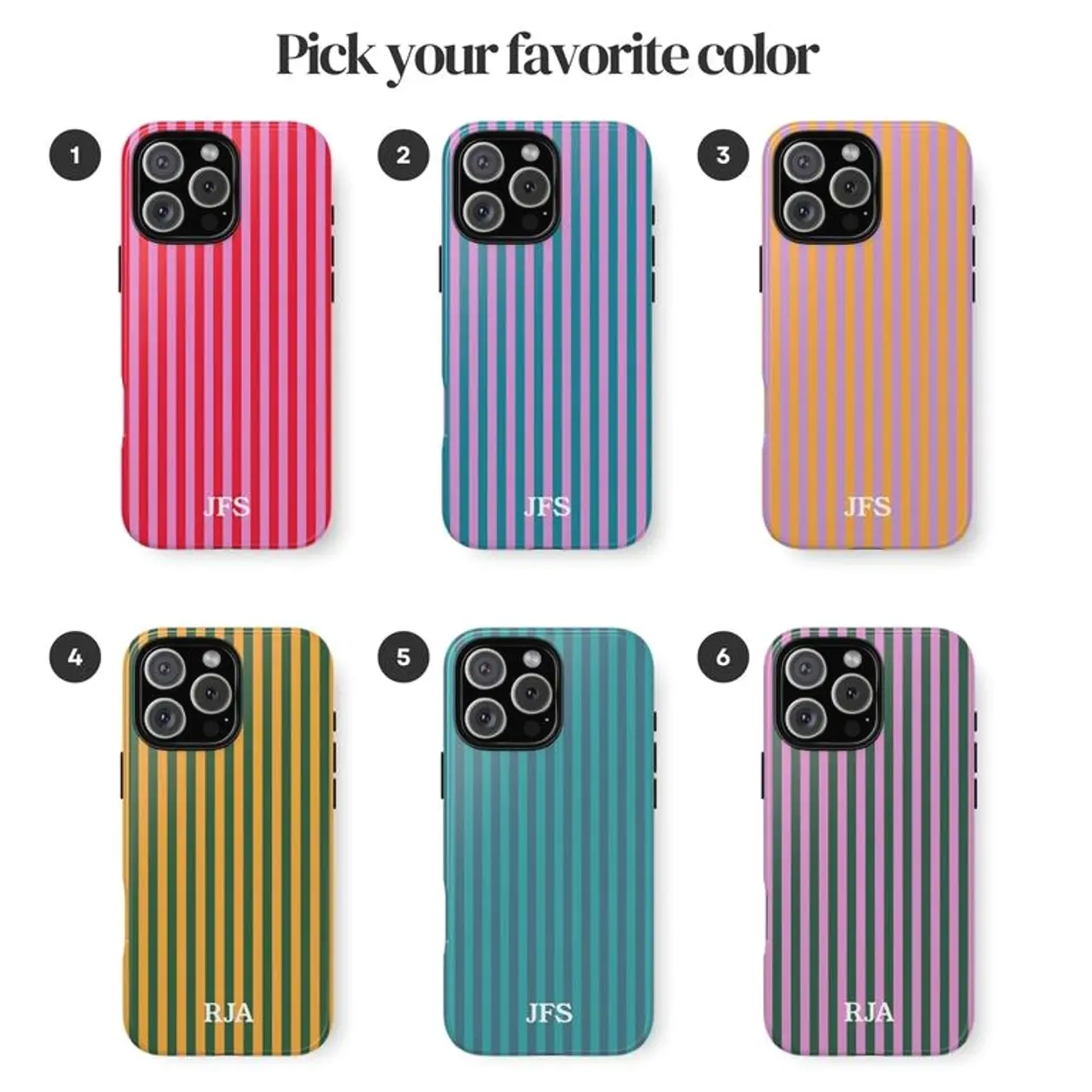 Personalized Monogram Phone Case, Stripes Initials Phone Cover for iphone 17 promax 16 15 14 13 12 11