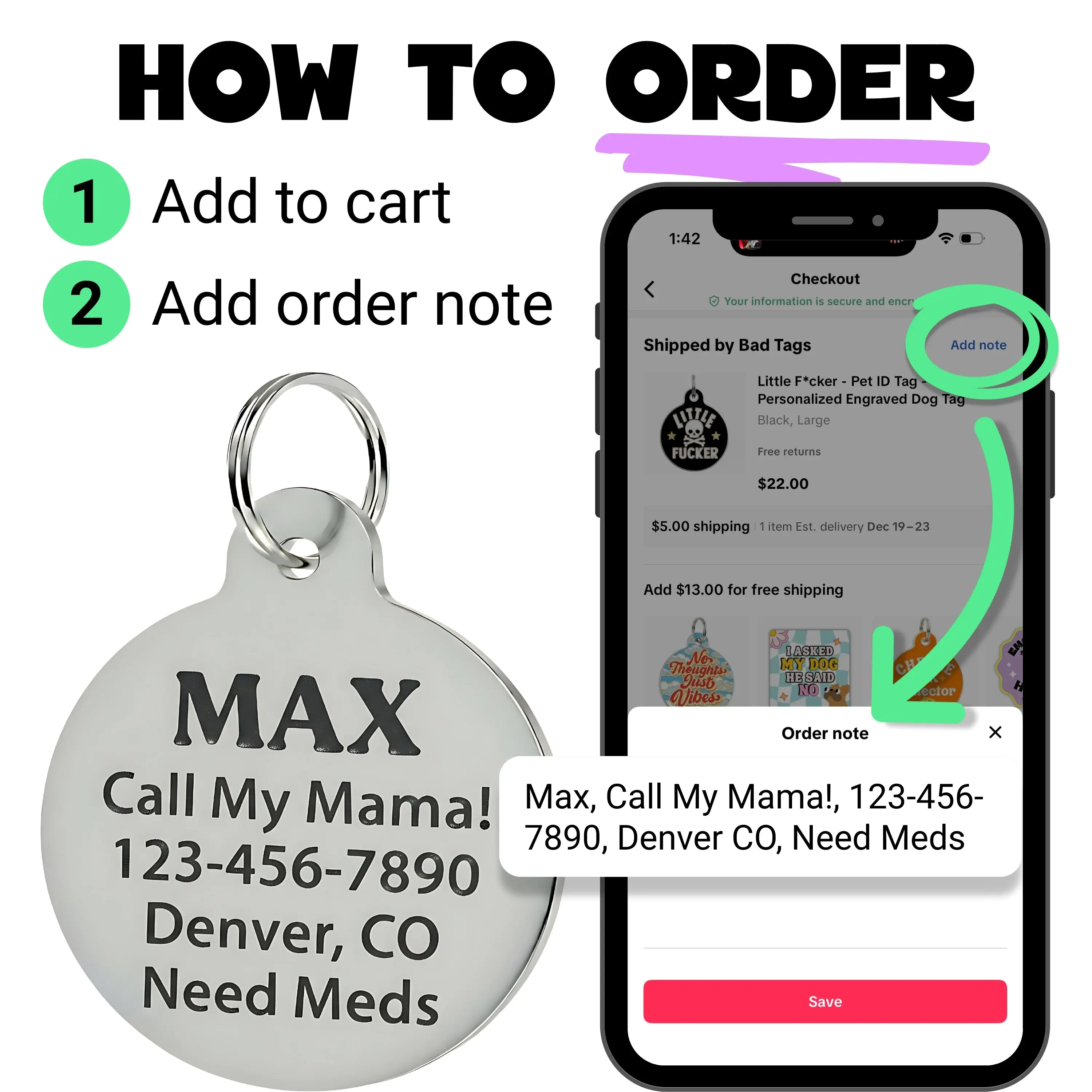 This tag is so amazing and came in better than expected! I love it so much! The cat size was perfect for my tiny puppy.