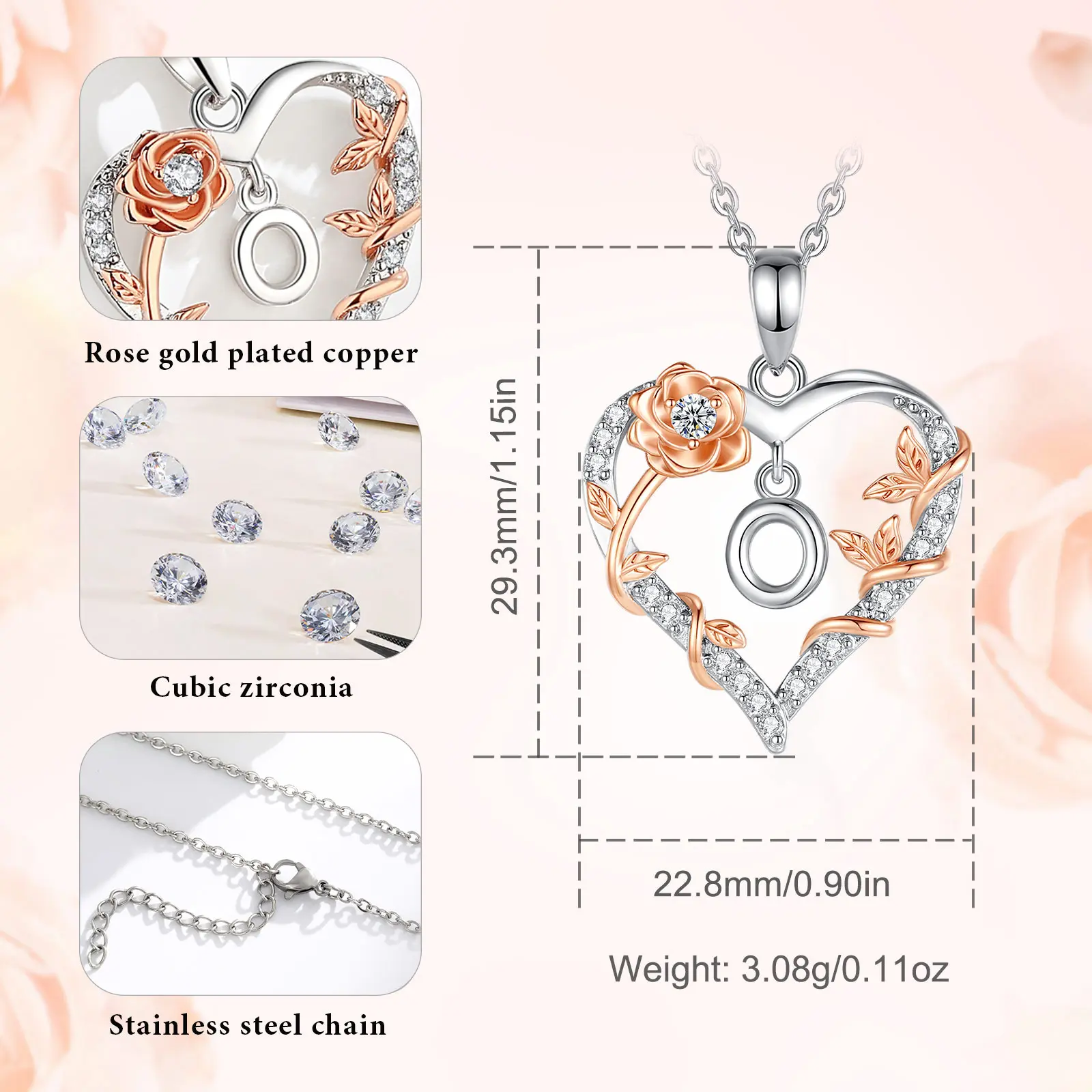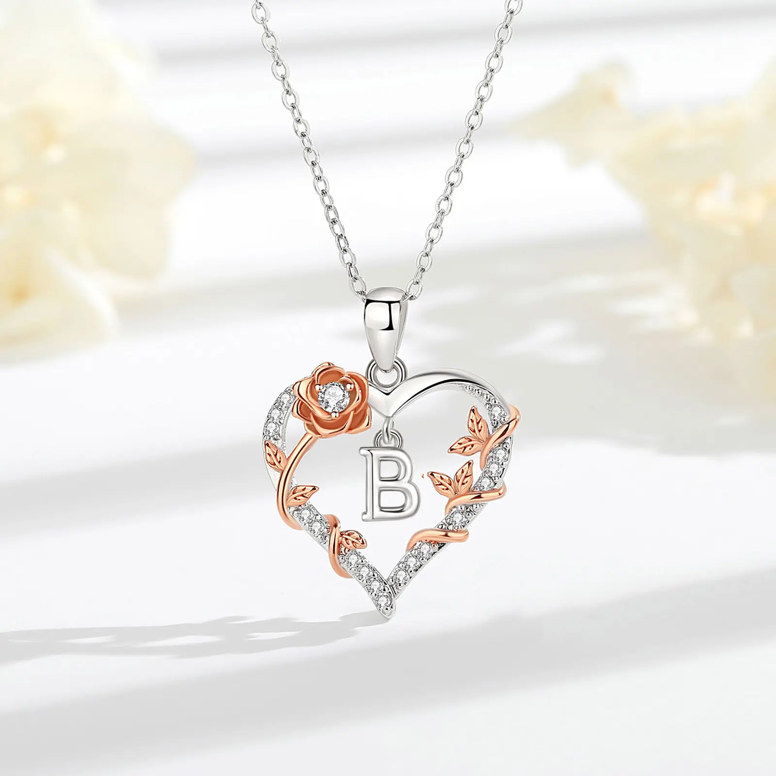 This letter heart necklace blends 24 alphabet letters with a classic heart design. Simple yet meaningful, the personalized letter symbolizes her uniqueness. It's an ideal way to express your love. The design is unique, making it a special gift for her.