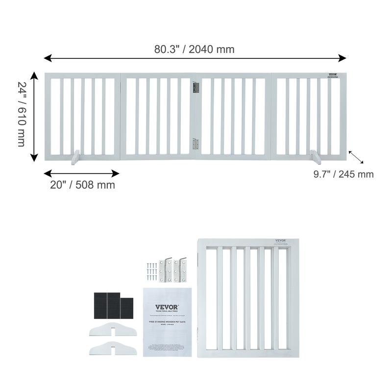 • Product Dimensions: The fully extended width of our foldable dog gate is 80.3". A single gate panel measures 20" Wx 24"H. There are 4 panels in total.