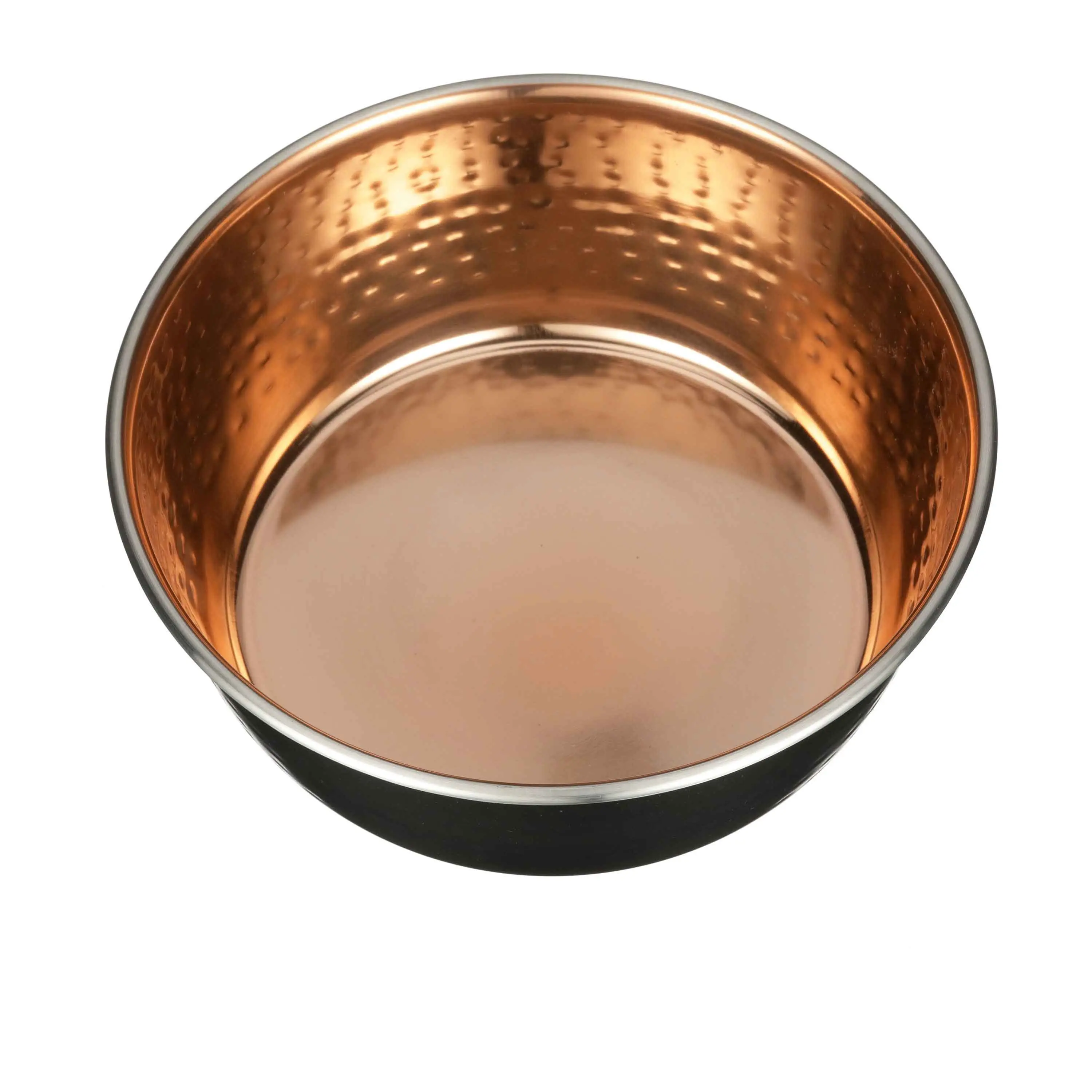Upgrade your pet's dining experience with Neater Pets Hammered Black & Copper Pet Bowls. These stylish bowls are perfect for both dogs and cats. The hammered design adds elegance, while the copper interior enhances the style. No-skid rubber dots prevent sliding and reduce noise. These bowls are suitable for food and water.