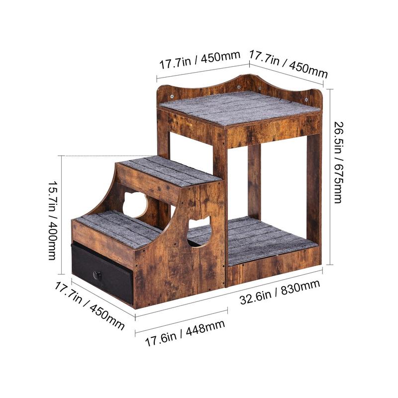 VEVOR Pet Bunk Bed with Removable Stairs,  Dog/Cat Window Perch with Storage, Multi-Level Bed Window Perch Dog Bedside Sleeper Couch, Small Pet Seat Platform, Indoor Use (Rustic Brown)