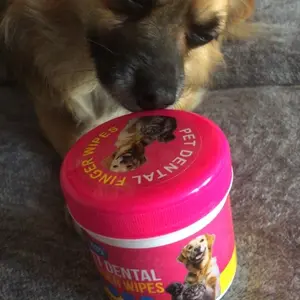 For Dental Wipes: Place the finger wipe onto your index finger and gently massage the teeth and gums in a circular motion. Use a new wipe for both the top and bottom of the mouth. For best results, incorporate this routine into your pet's daily oral hygiene.