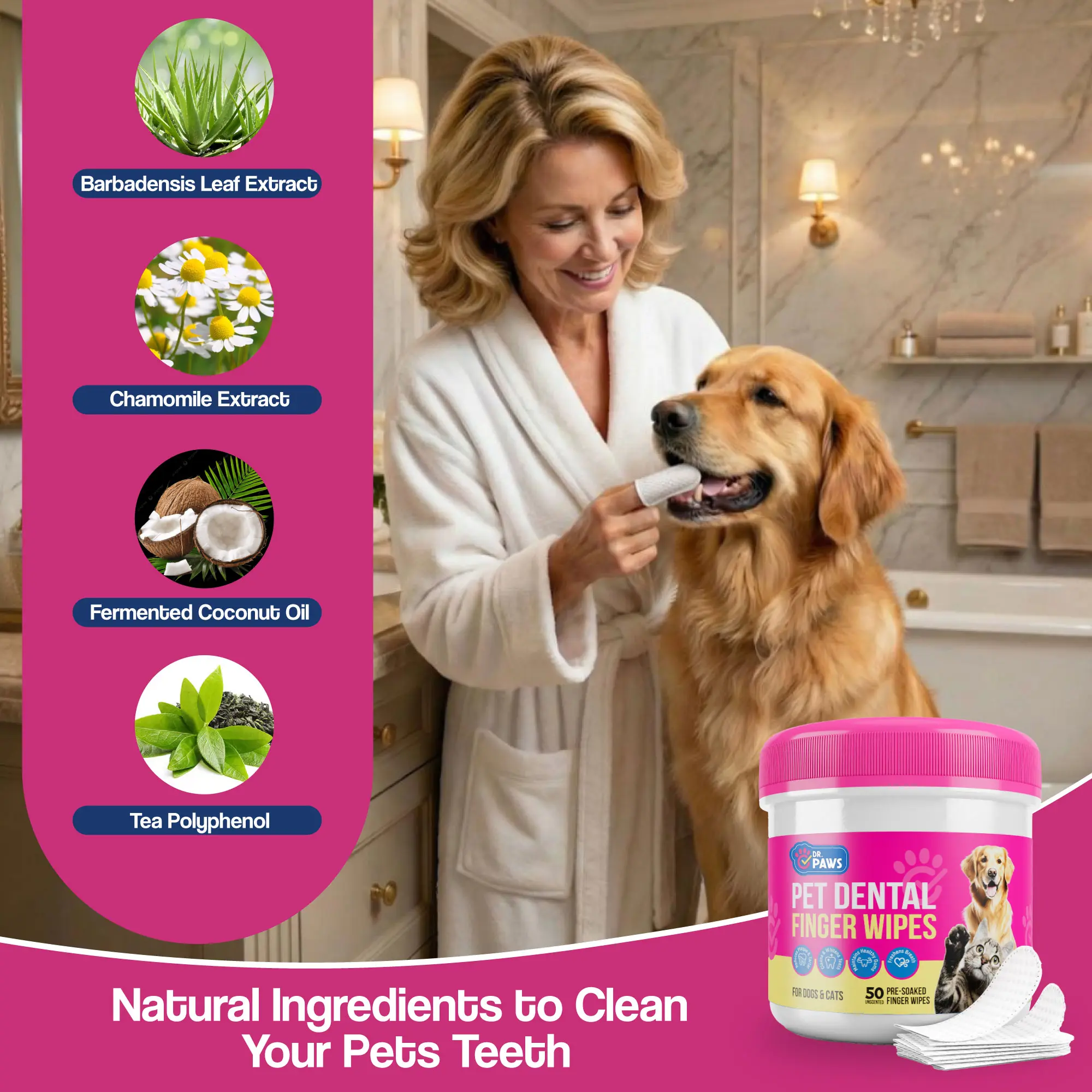 Keep your pet clean and healthy with Dr. Paws Choice Pet Care Finger Wipes—effortless grooming at your fingertips!