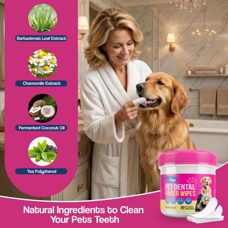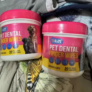 Our Pet Dental Finger Wipes are formulated to tackle bad breath and promote cleaner teeth for dogs and cats. Made with soft, non-woven polyester blended fabric infused with natural ingredients, they effectively remove plaque, freshen breath, and support healthy gums.