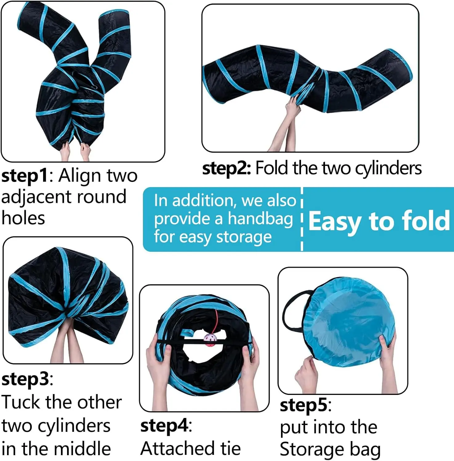 ·4 Way Collapsible: The tunnel is collapsible, making it easy to store and transport. It features a peek hole for added fun and engagement.