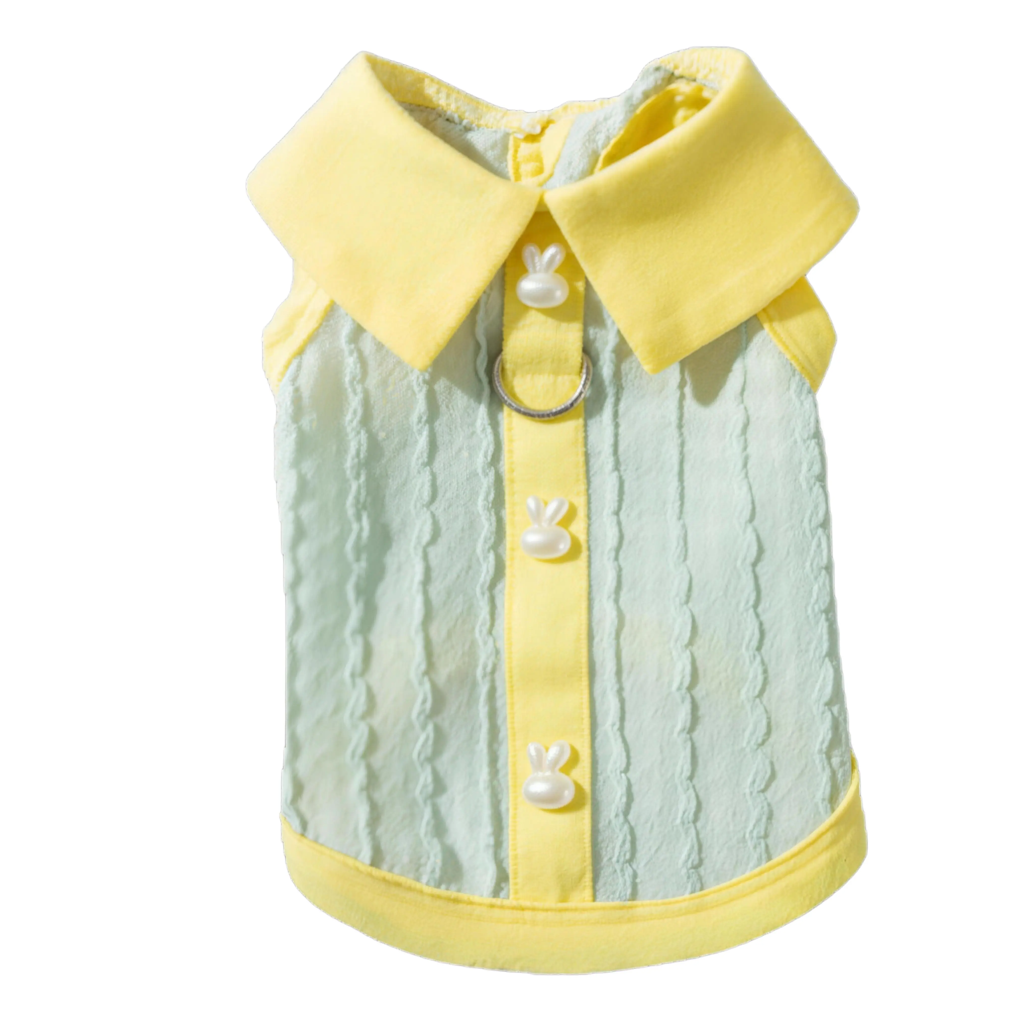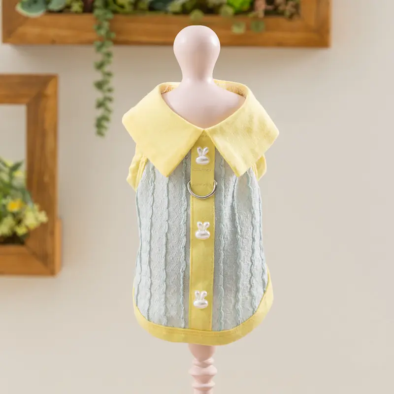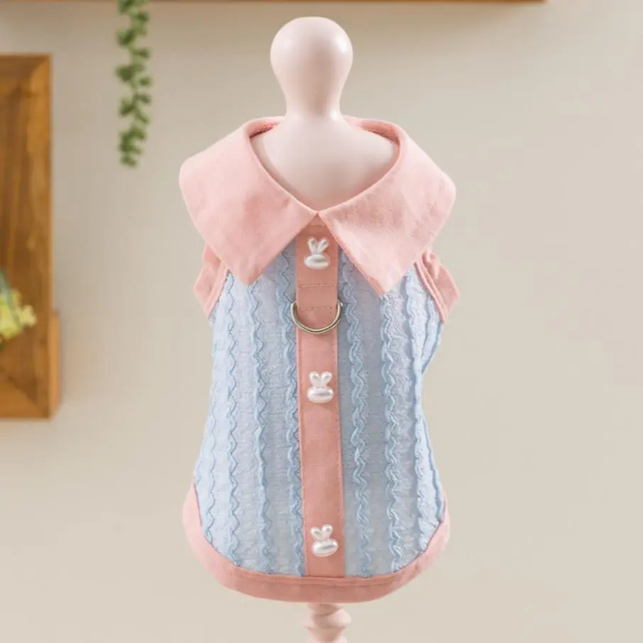 5. Pet Clothes Dog Cat T-Shirt Polo Shirt sleeveless Cute Costume Breathable Bow With Leash Ring D00039