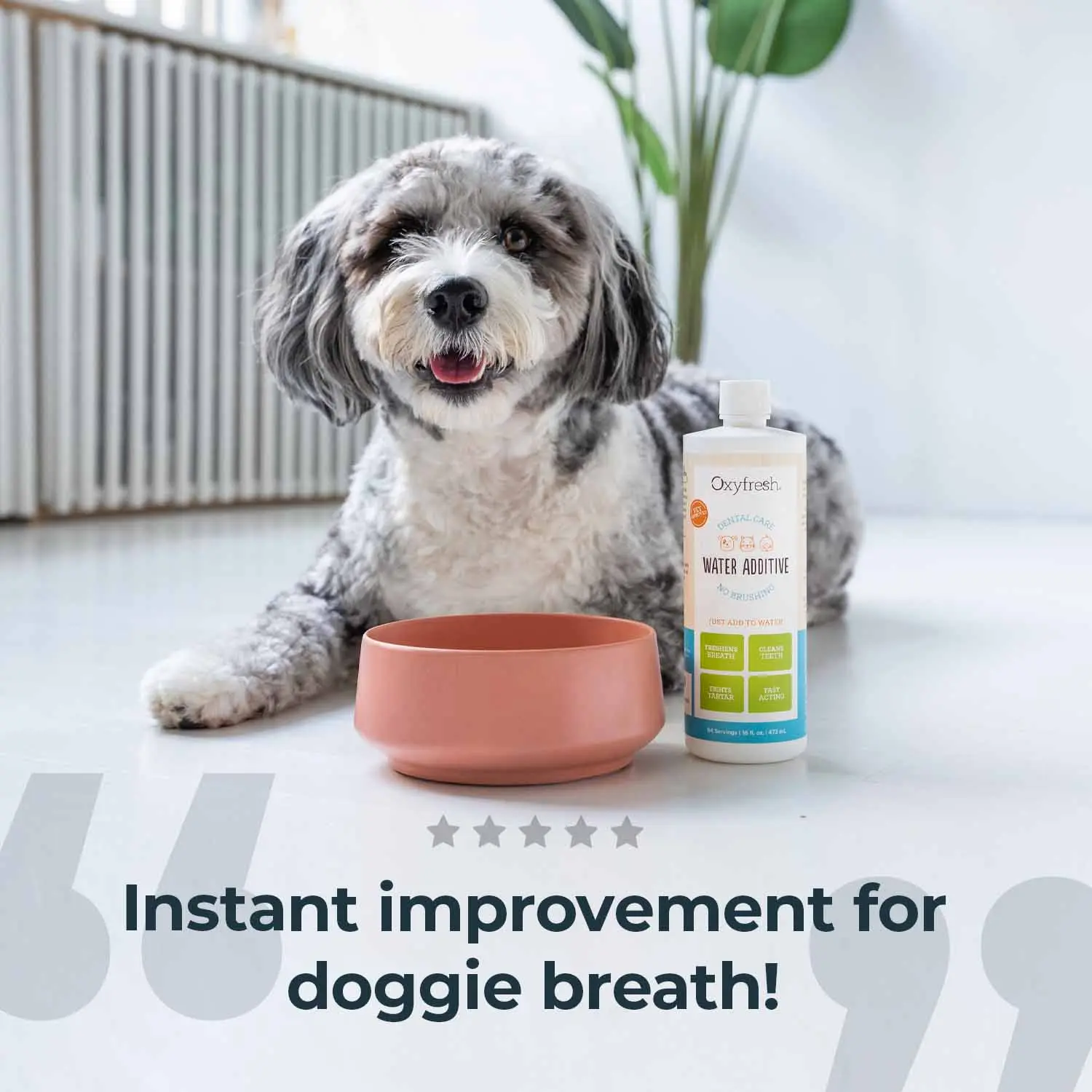 We have been using the Oxyfresh water additive for over a year now and are still loving it. That stinky breath is no longer a stench in our house and the pups remain kissable!