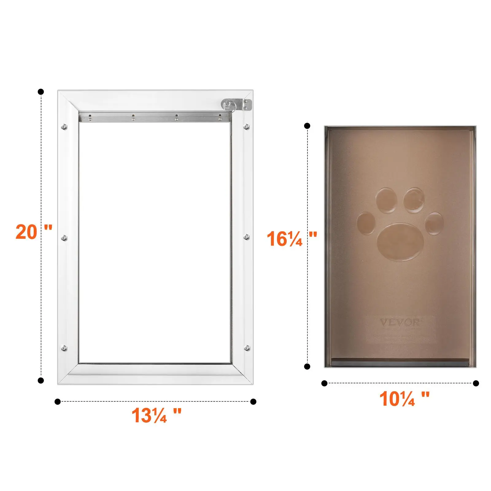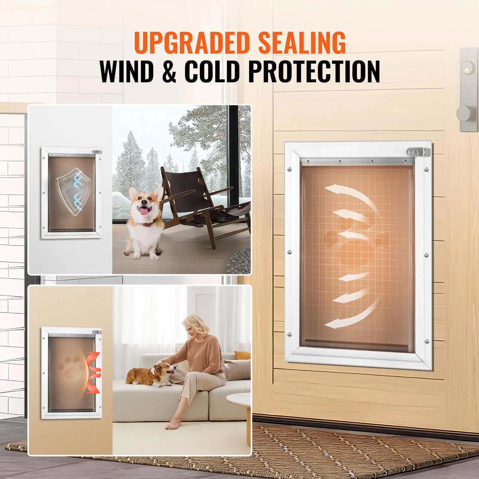 VEVOR Pet Door, TikTokShopBlackFriday, 13.27" x 20.04" Aluminum Frame with Lock and Flap System, Weatherproof Doggy Door, Easy to Install in Interior or Exterior Doors, Pet Door Suitable for Cat Doggie Kitties (White-L)
