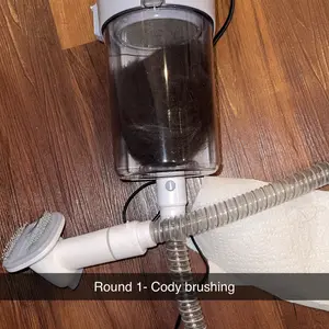 I cannot say enough good things about this vacuum, this is amazing. I have a black lab aka ‘glitter dog’ this really helps and all the extra attachments made clean up and the cleaning of the glitter dogs winter coat a breeze. Highly recommend for any dog parent!