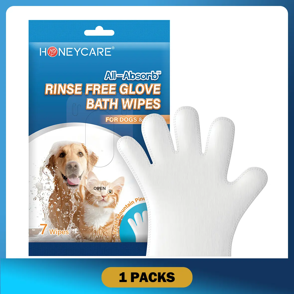 HONEYCARE disposable pet glove wipes are specially crafted for all furry companions—ideal for both dogs and cats. Hypoallergenic and rinse-free, these all-absorbent grooming gloves eliminate the hassle of traditional pet shampooing, delivering gentle, convenient care for your beloved pets, and making at-home grooming a breeze for every pet owner.