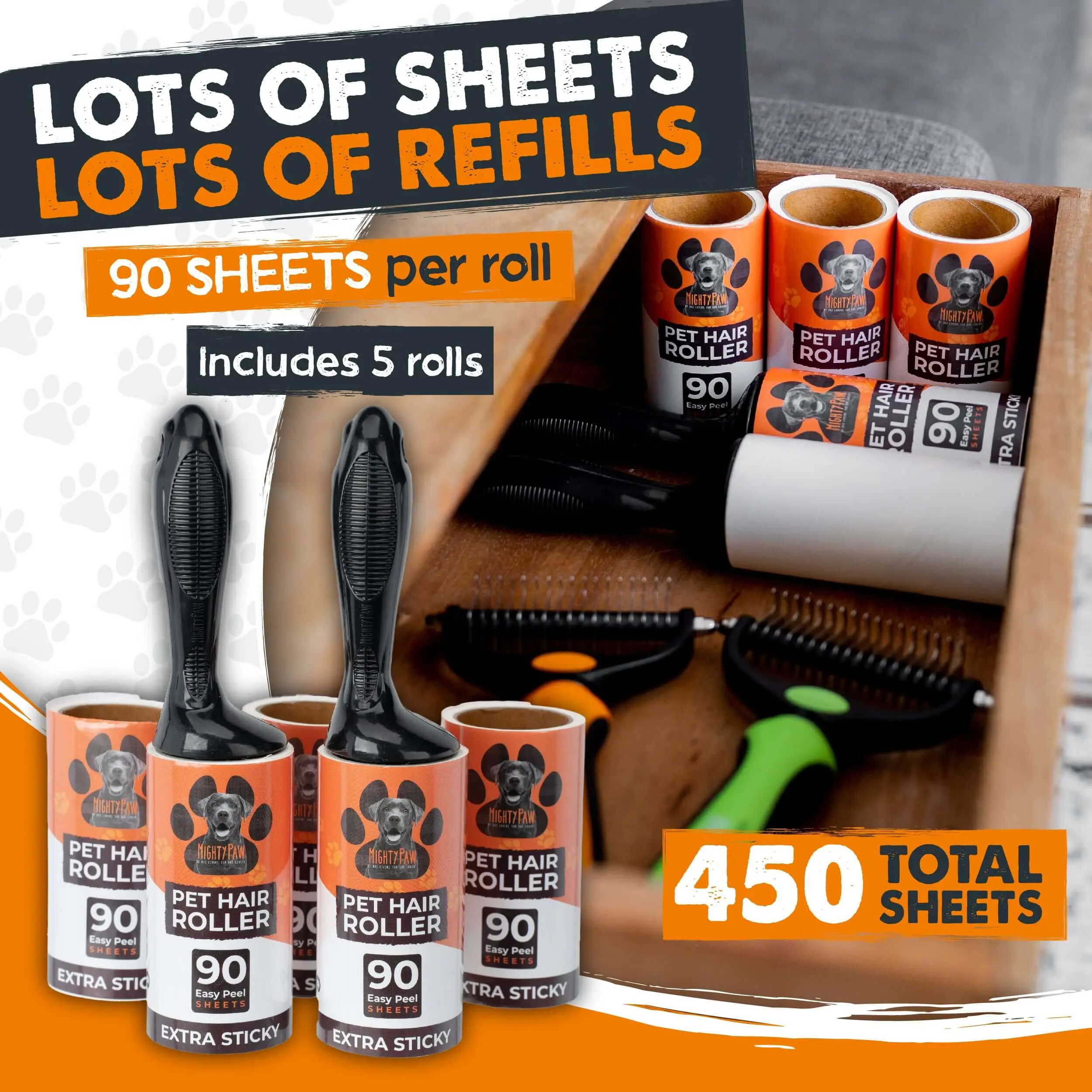 Equipped with a 360 spinning feature and extra sticky, easy-to-peel sheets, this lint roller simplifies the cleaning process, making it quick and hassle-free. Whether you're at home, in the office, or on the road, the Mighty Paw Pet Hair Roller is your go-to solution for maintaining cleanliness on clothing, furniture, and even car interiors.