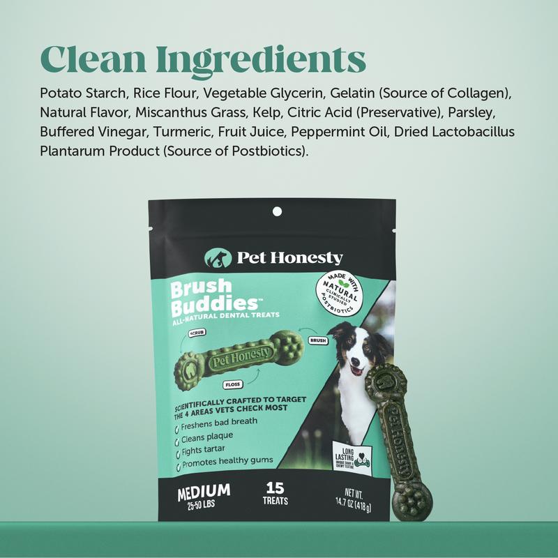 Pet Honesty Brush Buddies Long-Lasting Dental Treats - For Small Sized Dogs (15-25lbs)