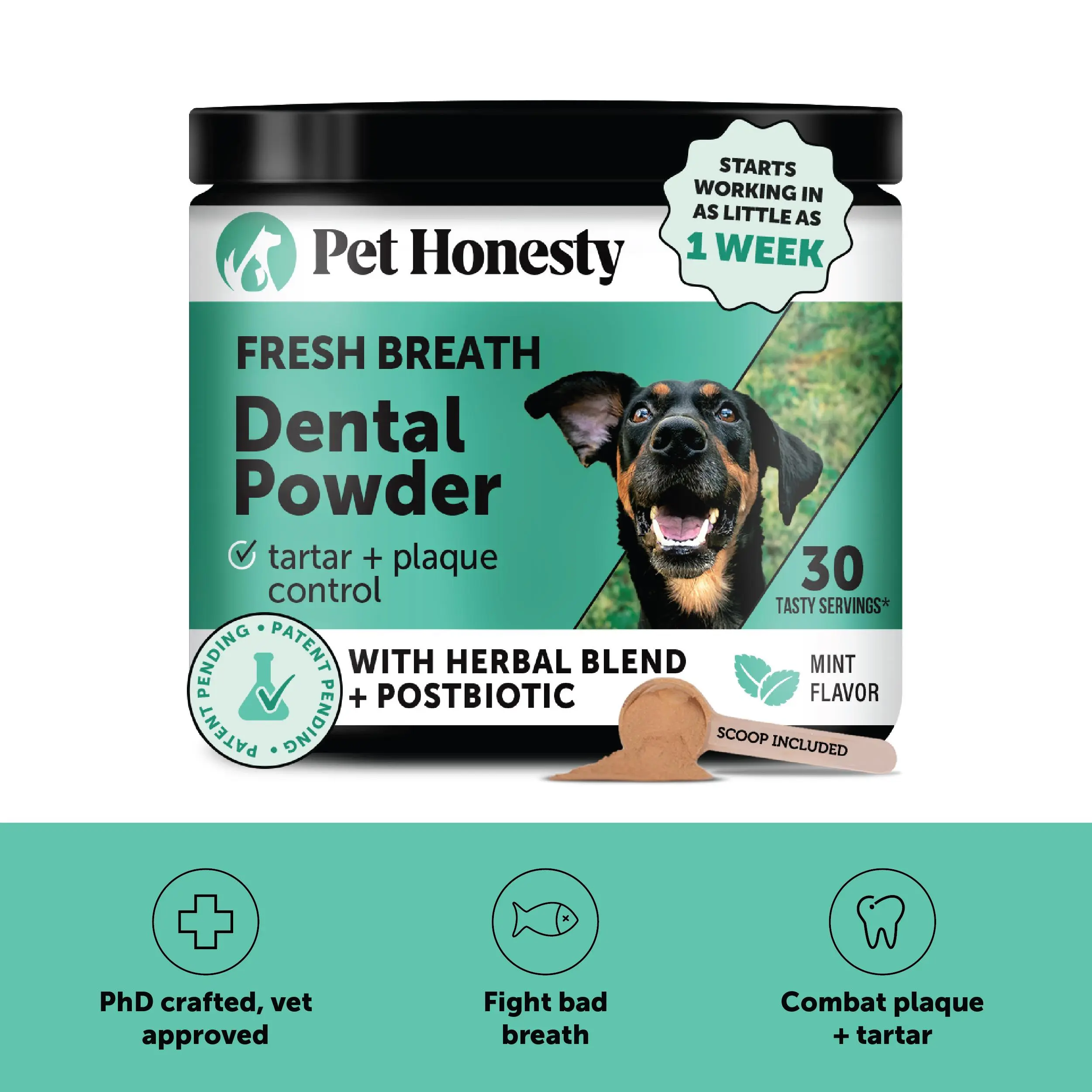 ·Fresh Breath Dental Powder: 87% of dogs' breath odor improved in 2 weeks!
