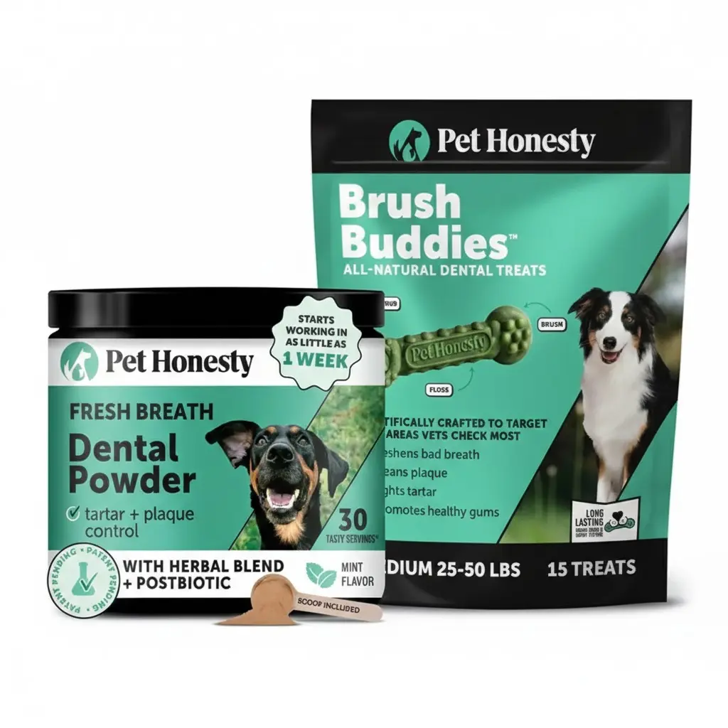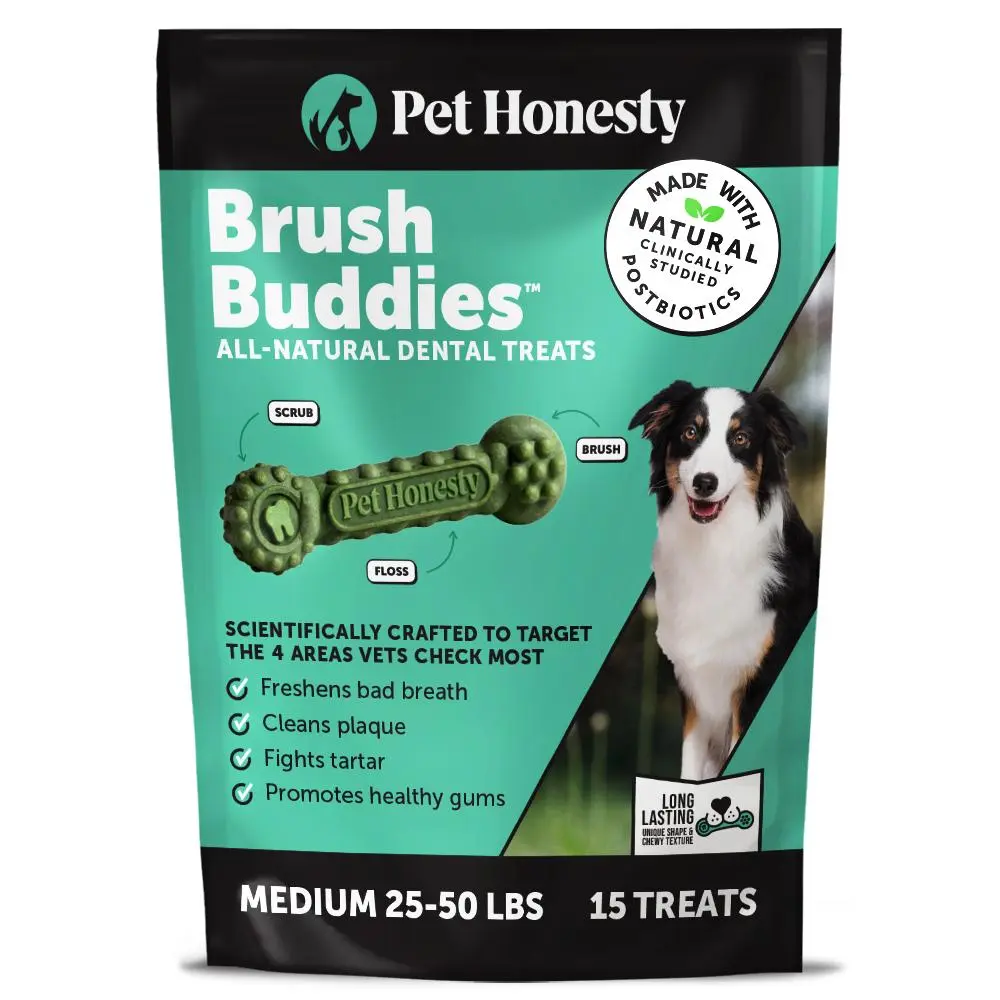 ·Brush Buddies Dental Treats (M): 2x longer-lasting treats that scrub while they chew.