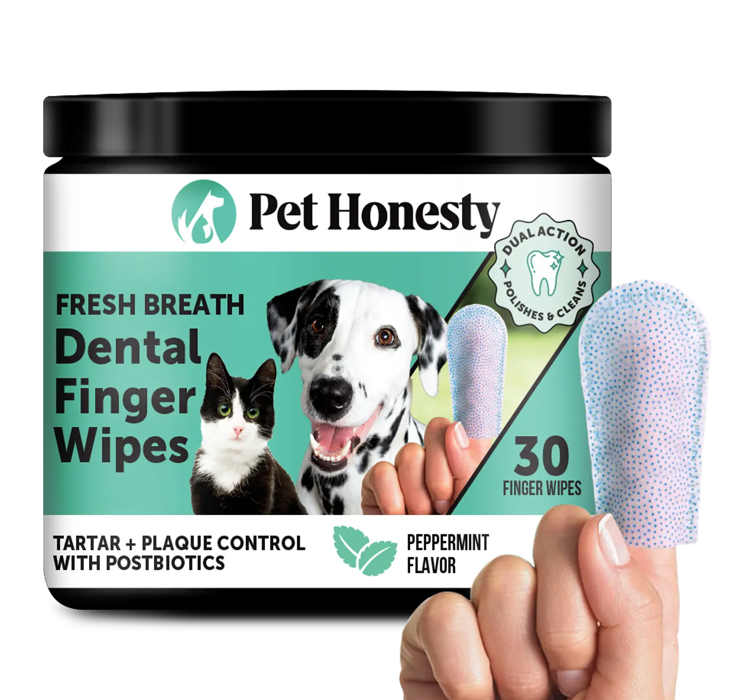 Pet Honesty's dental finger wipes are special because they provide dental care that you and your pet will love. With no fillers, artificial colors, or flavors, you can trust these wipes to give your pet the best dental care.
