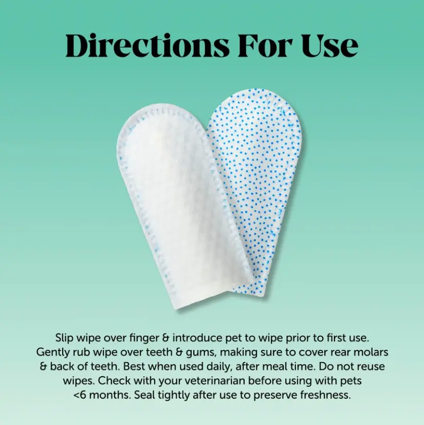 Pet Honesty's dental finger wipes are formulated with science-backed ingredients! They make supporting your pet's dental health easier. These dual action wipes have a quilted side for polish and a beaded side for plaque & tartar removal.