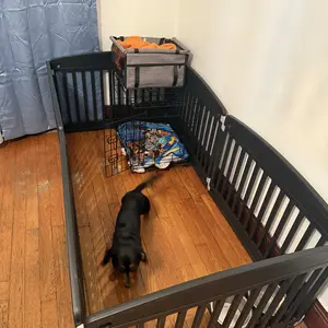 I absolutely love that it’s a six piece but I can turn it into a four piece if I like. My mom’s dog has the beginning of dementia and walks around the entire house all night. This playpen only keeps him safe from bumping into things and he can find his bed easily 👌🏽