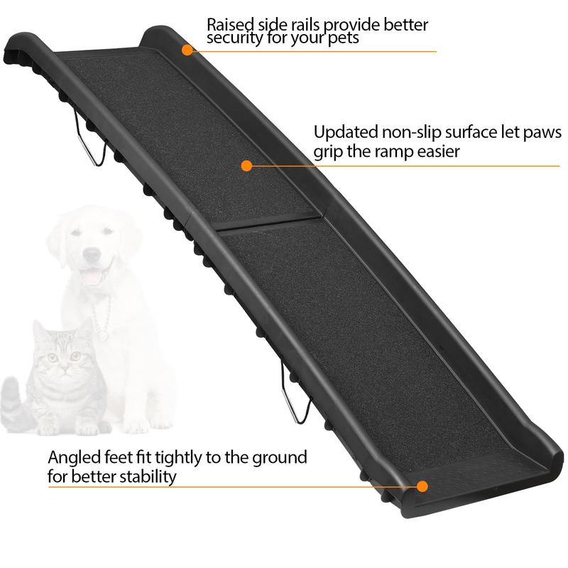 ·Secure Grip Surface: The upgraded non-slip surface ensures your pet’s paws have excellent traction. Its angled feet are designed to grip the ground firmly for added stability, while raised side rails give pets confidence and security when climbing.