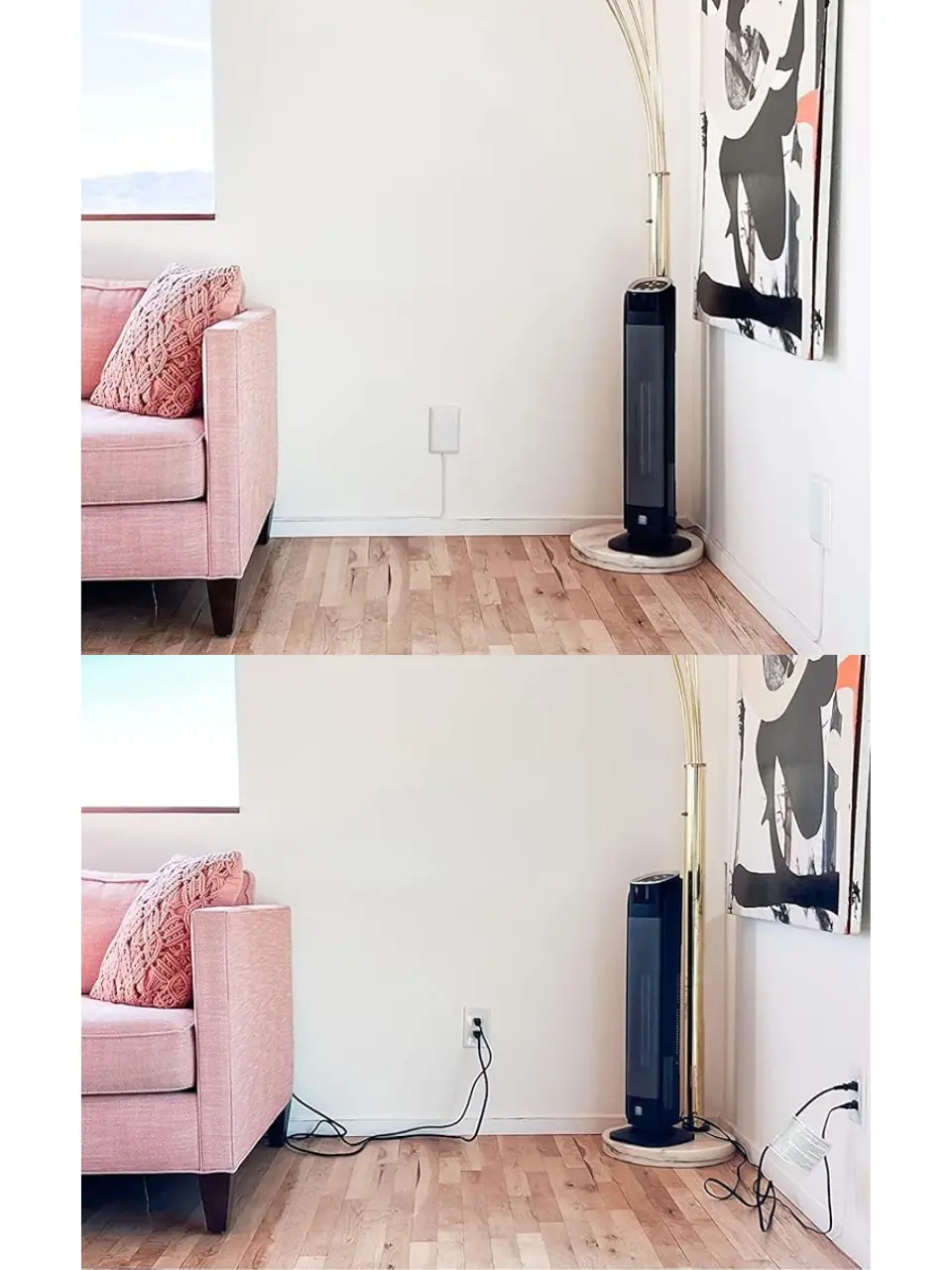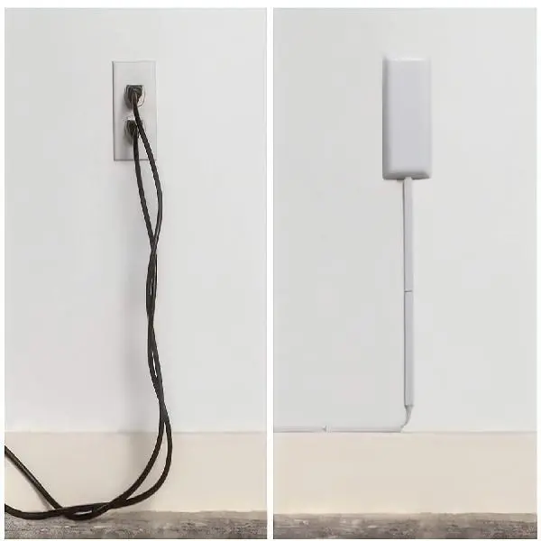 ·NEAT AND DISCREET. Consisting of double sided, removable adhesive strips and adhesive cord clips to neatly secure the cord to the wall, the wall-hugging, ultra-thin outlet cover and 8 feet of adhesive protective cord clips blend with the wall and nearly unnoticeable. You'll forget it's even there!