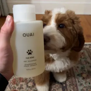 OUAI Fur Bébé is a gentle, vegan pet shampoo made with moisturizing aloe vera, nourishing ramen camellia extract, and protective hydrolyzed vegetable protein to cleanse and soften fur without drying out your dog’s skin. It lathers up rich, rinses clean, and leaves coats silky, not stripped.