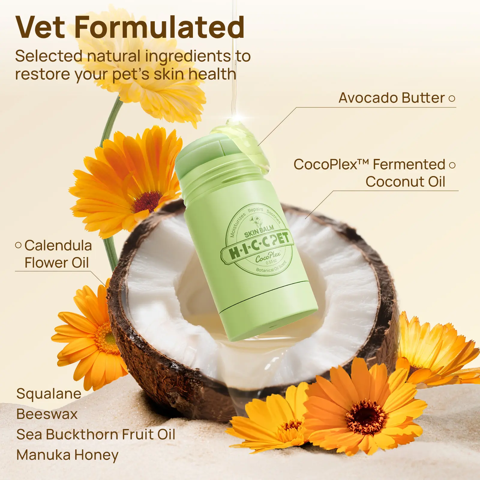 ·HICC Pet Skin Soother Butter uses natural ingredients like CocoPlex Fermented Coconut Oil, Calendula Officinalis Flower Oil, and Anthemis Nobilis Flower Oil to soothe and protect your pet's dry, itchy skin in a convenient twist-up tube.