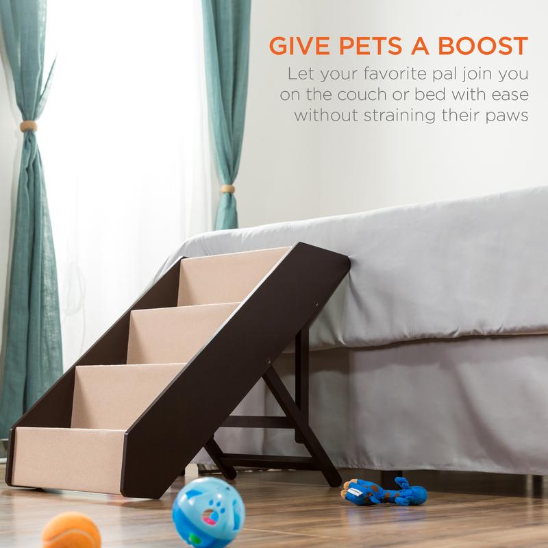 FOLDABLE STEPS: Built to fold in a compact size for traveling companions or for storage when you want to limit the amount of time your pet spends on the bed or couches