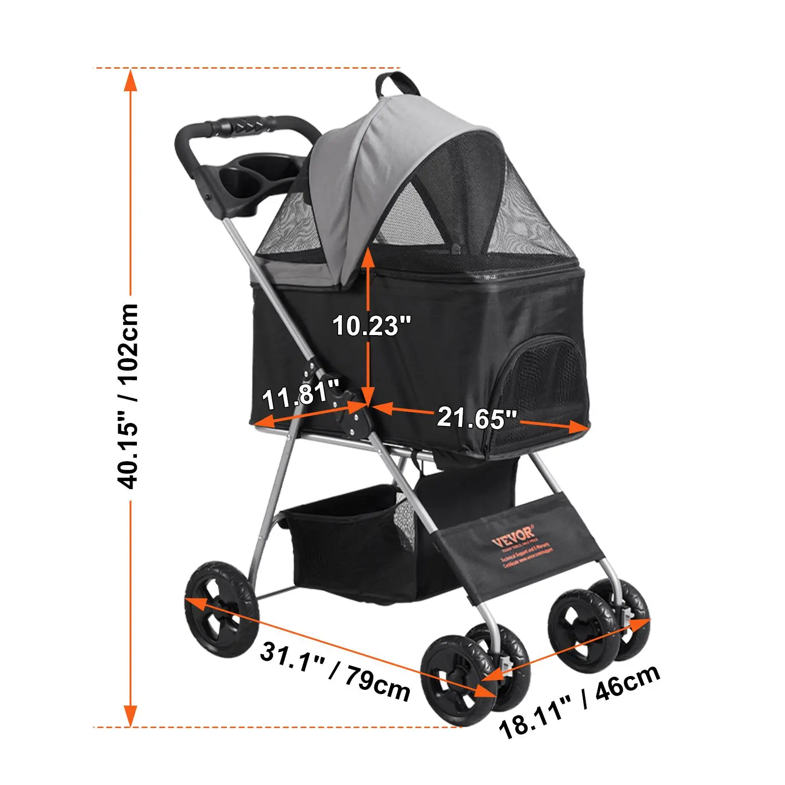 • 35 lbs Weight Capacity: This pet stroller features a robust alloy frame and rust-resistant powder coating, ensuring durability and longevity. Whether it's a leisurely park stroll or a long journey, it provides your pet's comfort and safety.