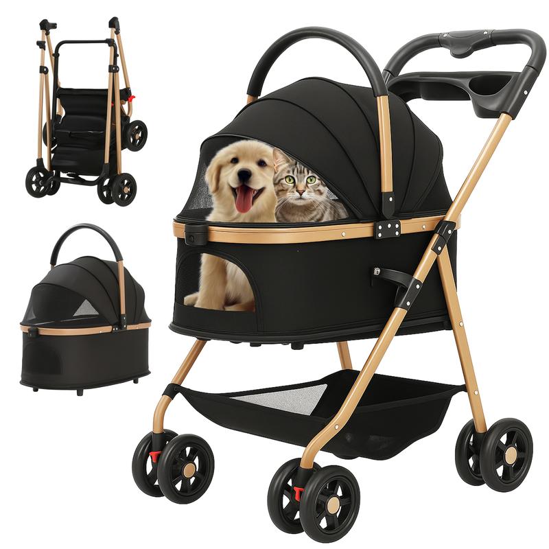 This versatile stroller is perfect for small to medium-sized pets weighing up to 50 lbs. It features a foldable design for easy storage and transport. The stroller includes a removable carrier, a storage basket, and a cup holder, making it a 3-in-1 multifunctional product. Ideal for pet owners looking for convenience and practicality.