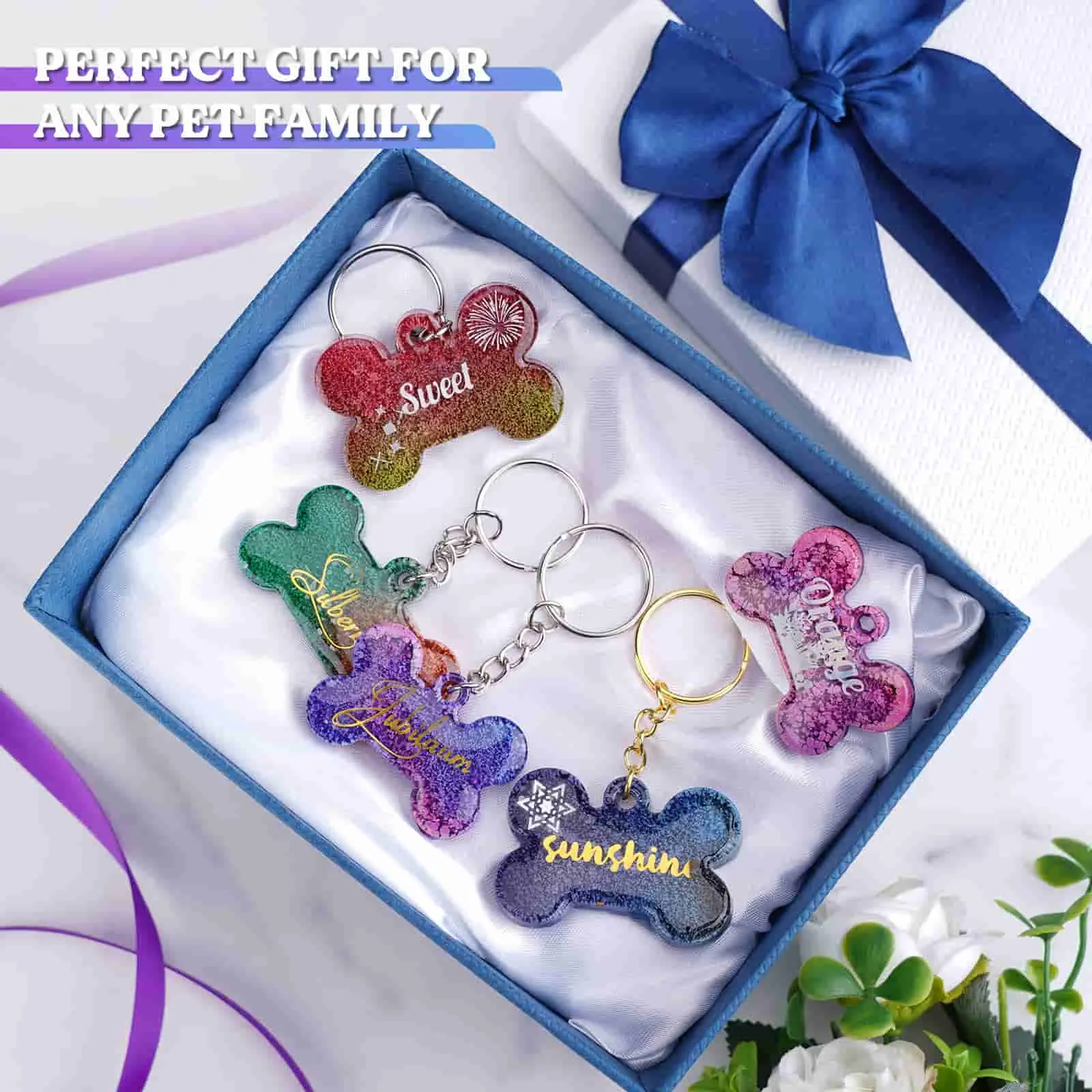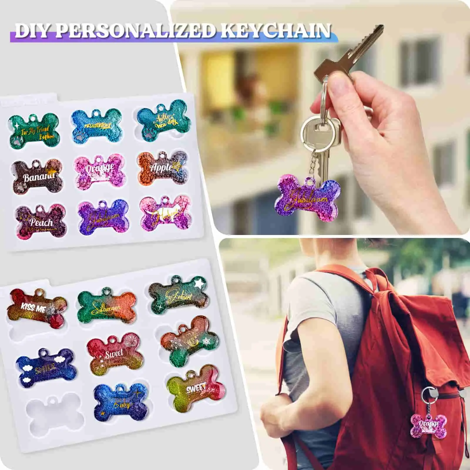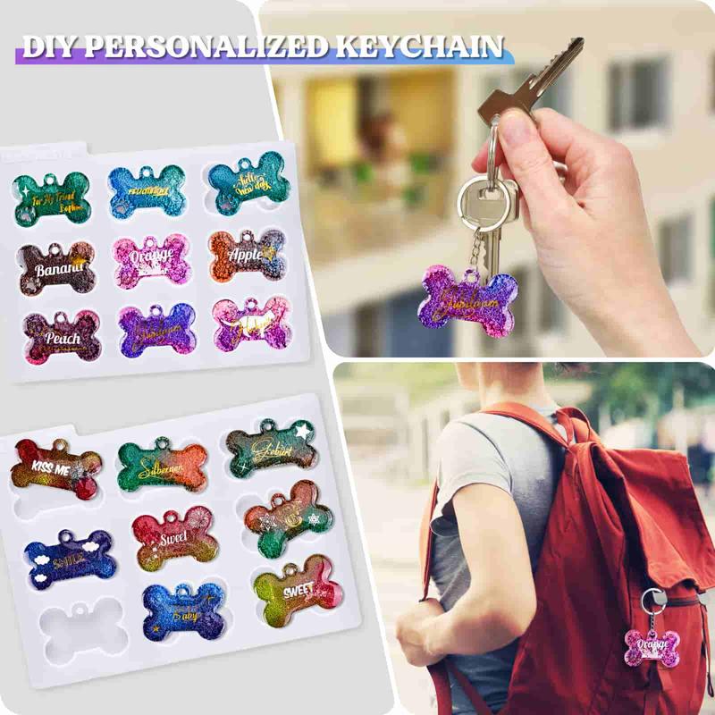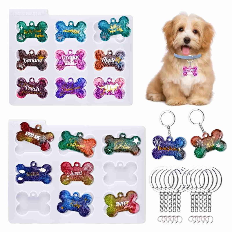 ·【What You Get】:Pet tag resin molds kit include 2 x resin molds,10 x key rings with chains, and 10 x open jump rings; each cavity has a hole, and no drill is required. Easy for you to fix it on the keychain or hang it. It's a practical combination for your DIY crafts, perfect for making your individualized resin pet tags, keychains and pendants.