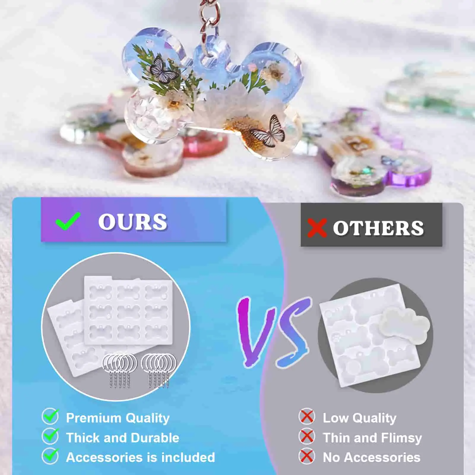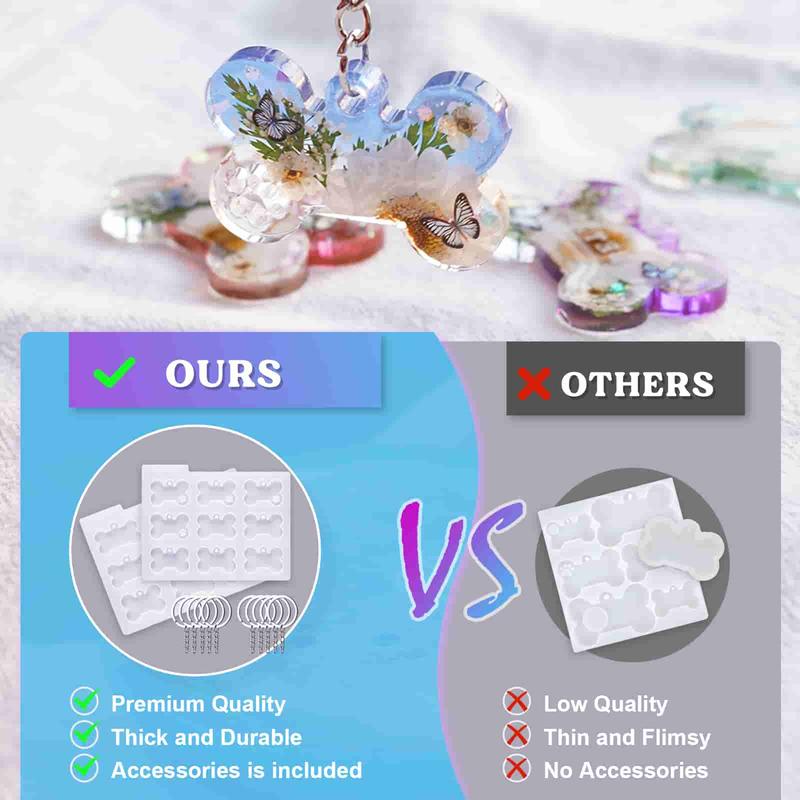 ·【Perfect Sizes and Shapes】: bone shape dog tag resin mold has 2 sizes, and each cavity measures approx. 1.7''x 1.2''x 0.2''and 2''x 1.4''x 0.2''; it's deep enough to embed many embellishments like dried flowers and glitters sequins, alcohol inks, etc. And the finished products are very lightweight and comfortable to wear. The alloyed key rings are 2'' in diameter, which allows you to pass through the finished hole easily, and it's antirust and reusable
