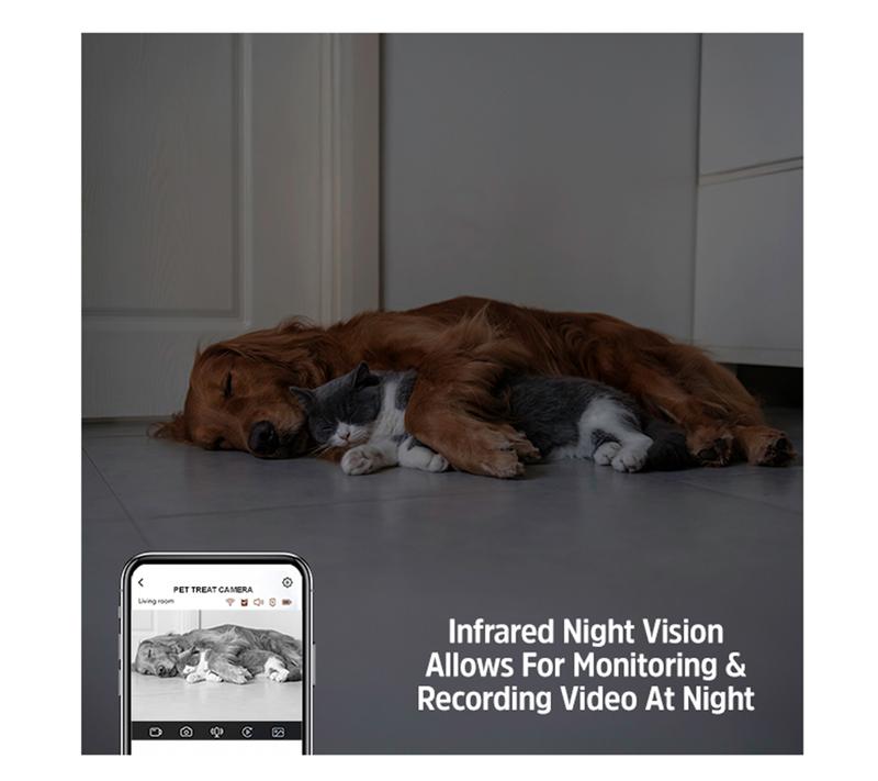 Keep a watchful eye on your pet's antics when you're away from home with this Energizer Smart 5GHz Wi-Fi Pet Treat Dispenser with Camera. Just pull up the smartphone app and view your furry friend in crisp 2K video resolution, with motion tracking following their movement and night vision providing around-the-clock coverage. Plus, you can even talk to your pet through two-way audio, and then reward them with a treat with a simple tap in the app. From Energizer.