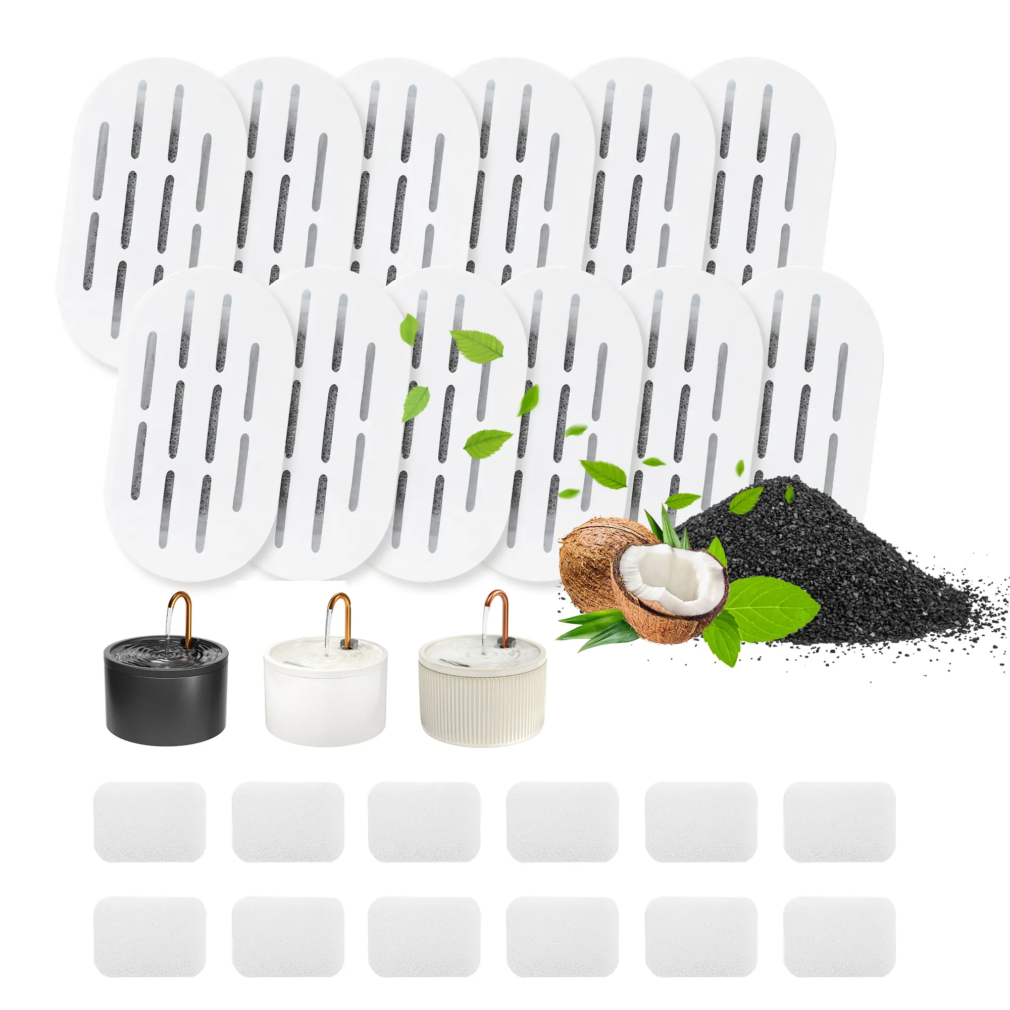 12 high-quality replacement filters: 6 carbon filters + 6 square sponge filters. Perfectly sized to fit most stainless steel cat water fountains on the market.