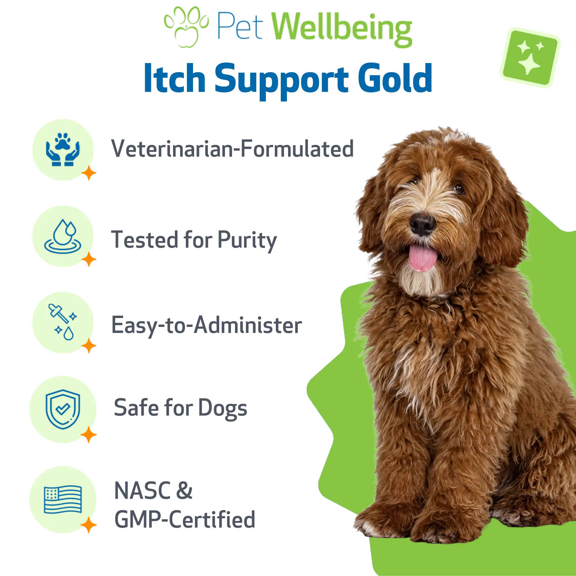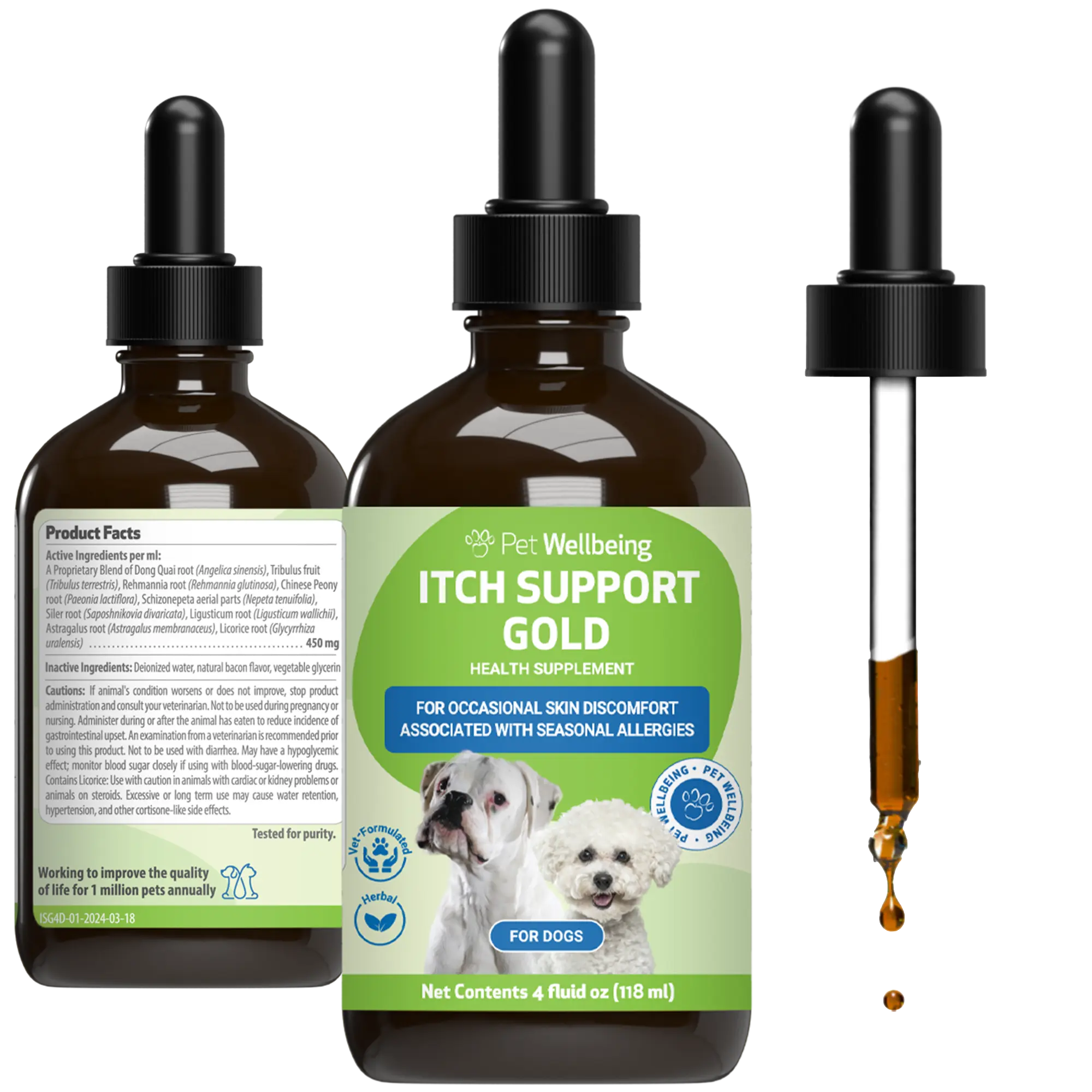 Itch Support Gold is not for acute or severe allergic reactions. It does not address emergency allergy situations. If your dog requires immediate medical attention, consult a veterinarian.