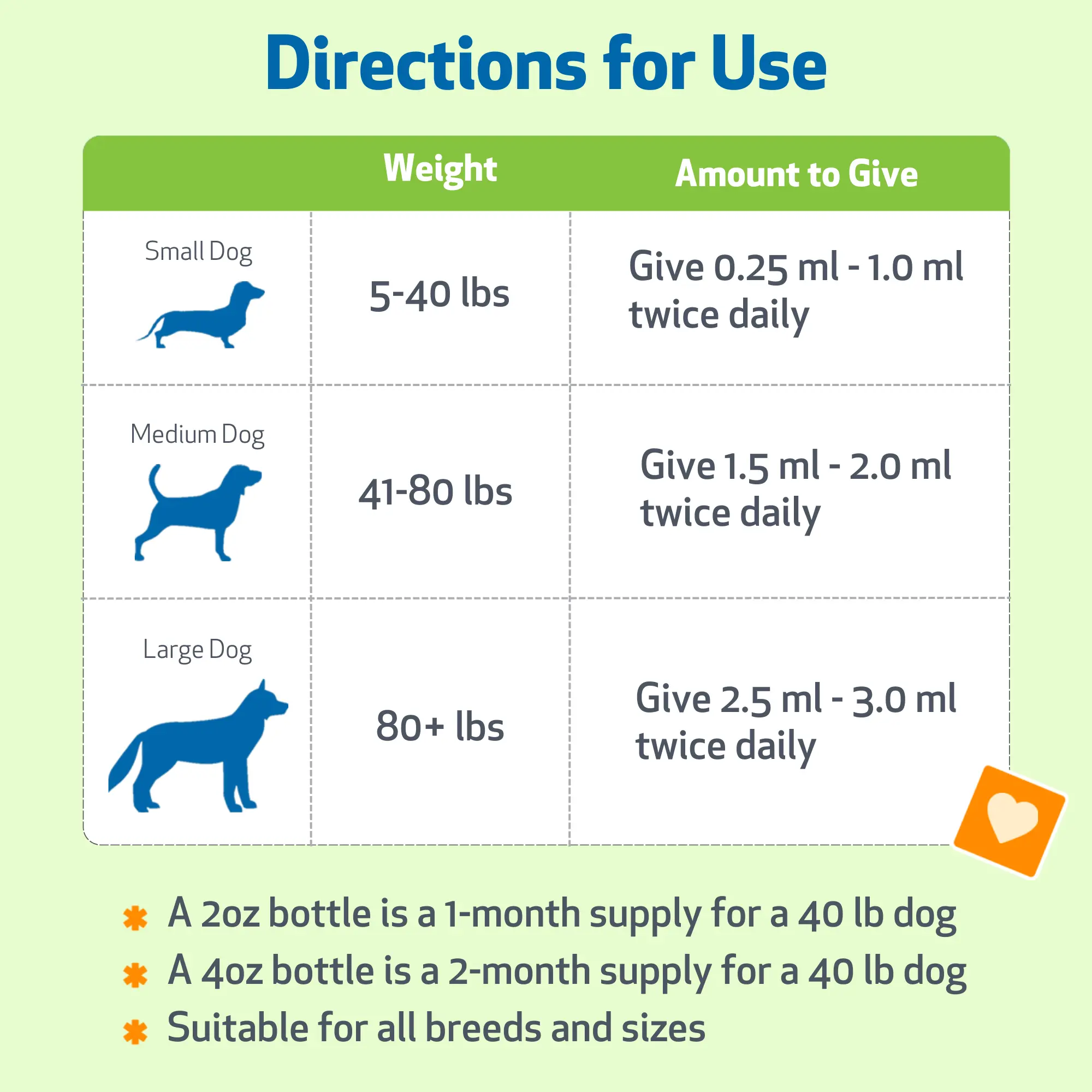 ·2 oz (59 ml) is a 1-month supply for most dogs.